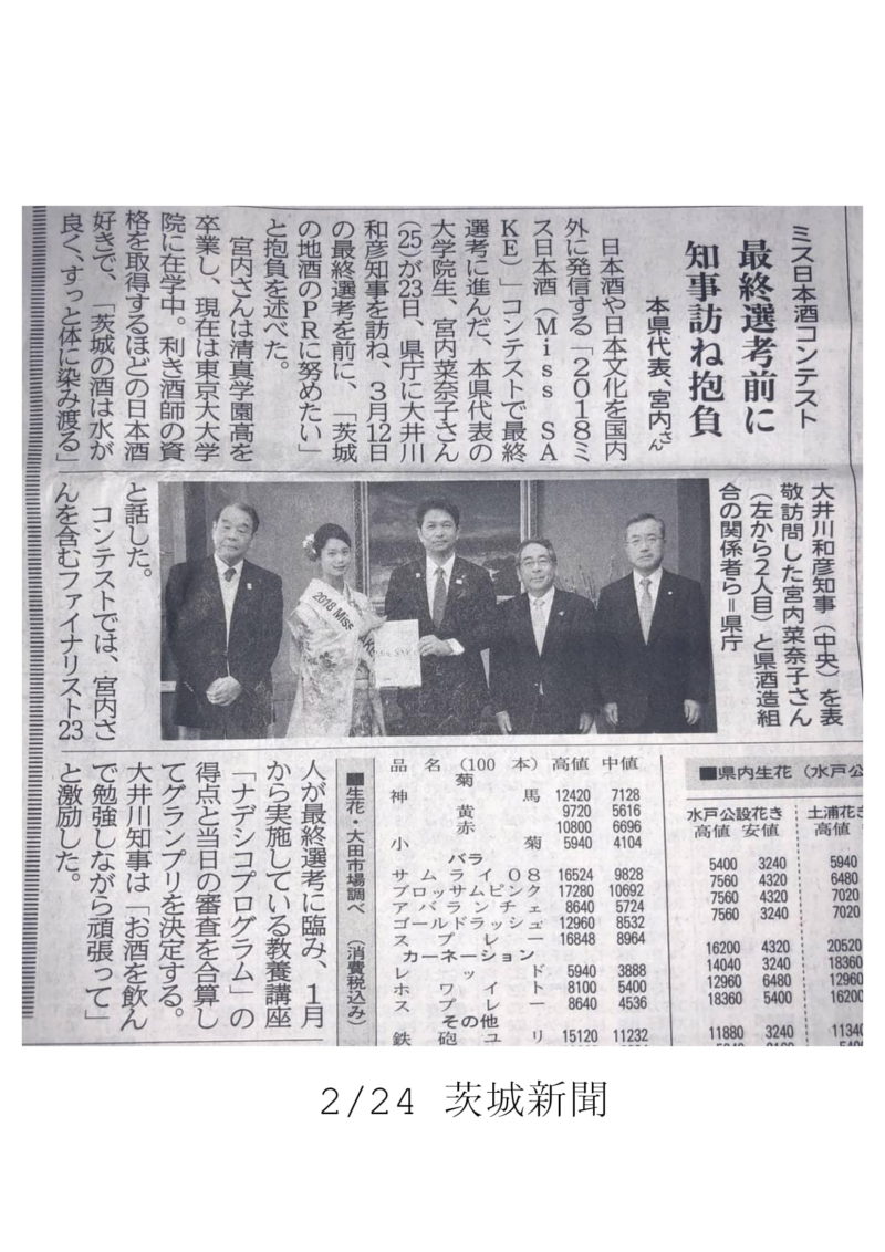2018 ミス日本酒茨城 宮内菜奈子が、2018年2月23日に、茨城県庁にて、茨城県知事 大井川和彦様へ表敬訪問させていただきました。