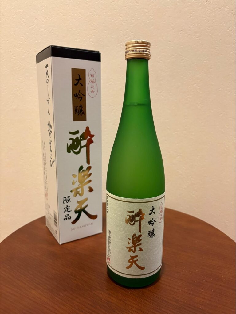 At the conclusion of the visit, I was generously presented with a beautifully wrapped bottle of “Daiginjo Suirakuten.” My family has long enjoyed “Suirakuten,” and it remains one of the most unforgettable sake I have ever tasted. Its elegant aroma reminiscent of muscat and melon, its remarkably smooth texture, and its deep, graceful umami make it a sake I sincerely wish even those unfamiliar with Japanese sake could try at least once. As I already recommend it to friends, receiving such a cherished sake as a gift filled me with joy.