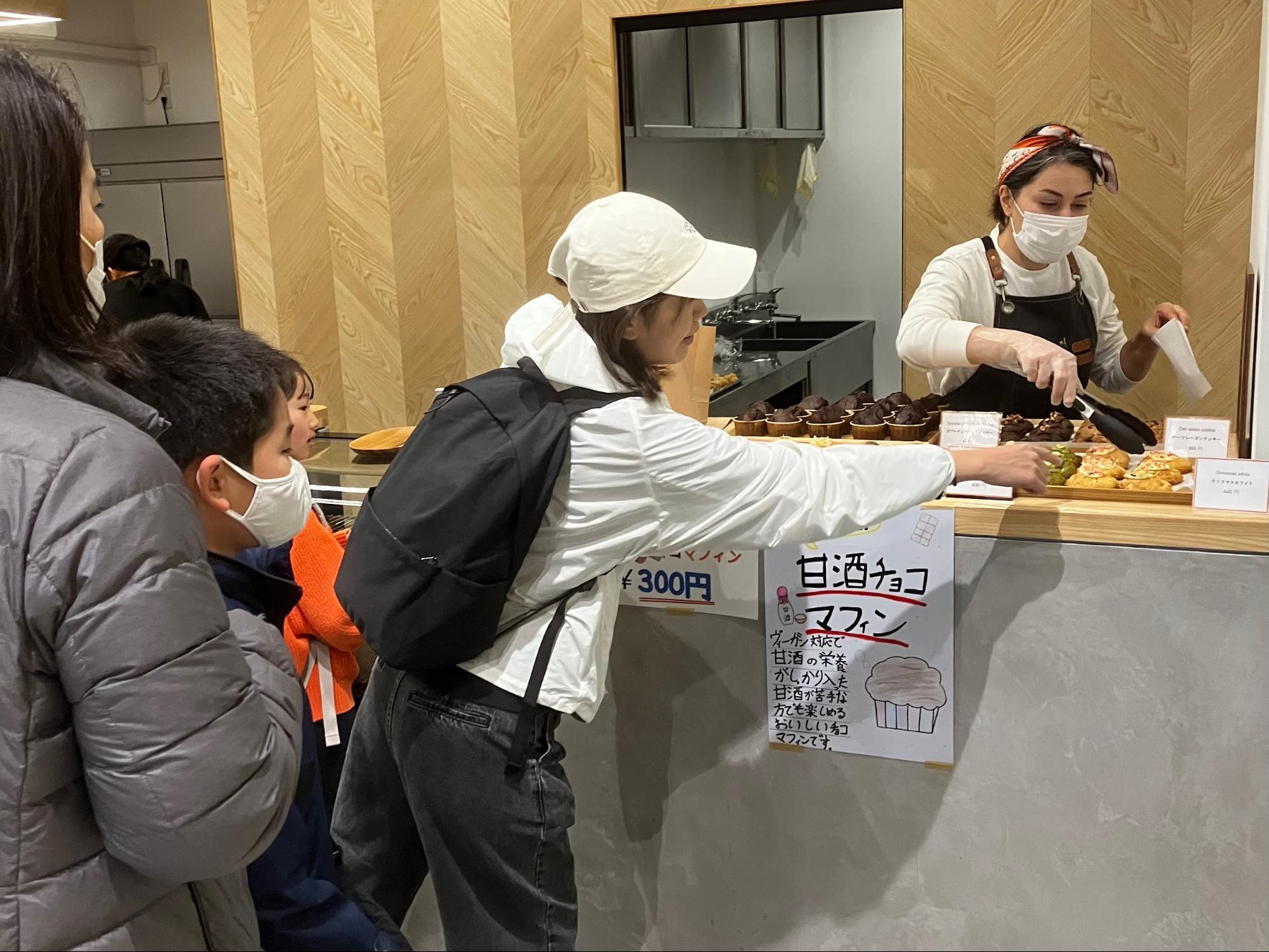 250円にするか300円にするかで悩みました。安い方がお客様が買いやすいという意見もあったのですが、マフィンを作るのには材料費もかかっていること、少しでも高い方が多くイランに寄付できるという理由から、300円になりました。