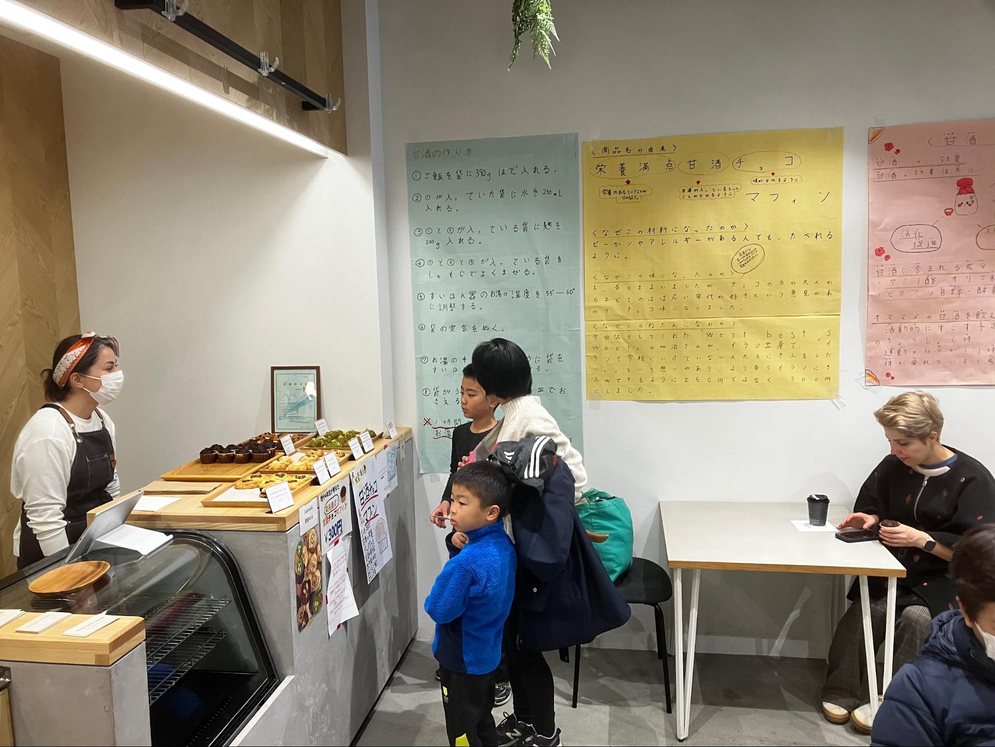 たくさんのお客様が、子どもたちが甘酒についてまとめた掲示物を興味深そうに見ておりました。