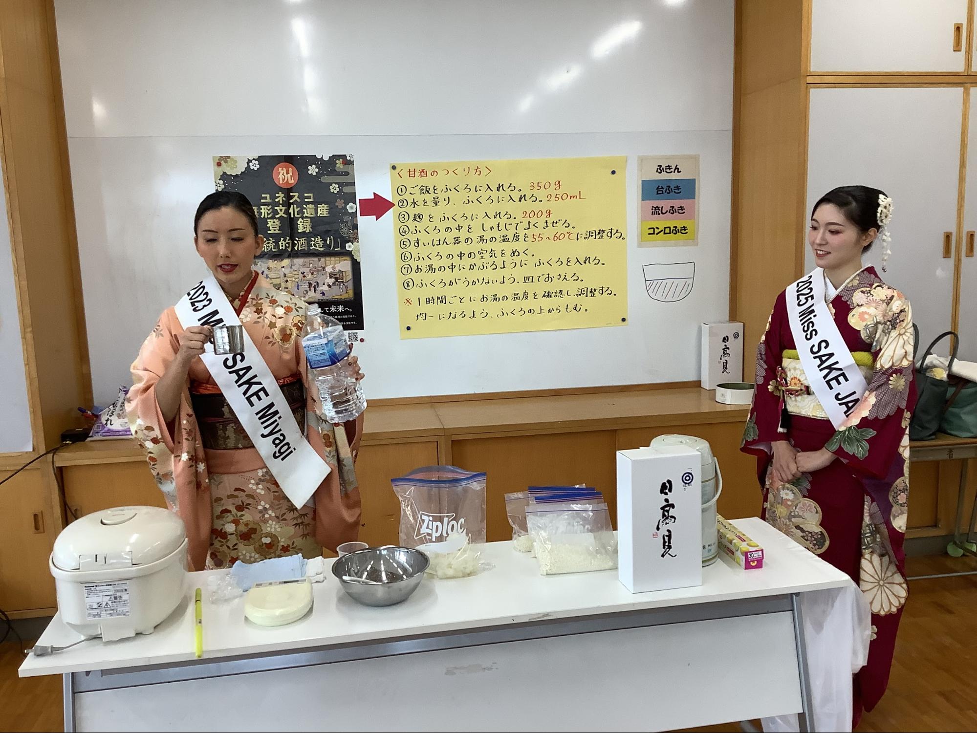 11月11日(火)に、私が勤務する横浜市の小学校にて、一般社団法人 Miss SAKE 代表理事 大西美香氏、2025 Miss SAKE JAPAN 館農知里さんと共に甘酒づくり教室を実施しました。
