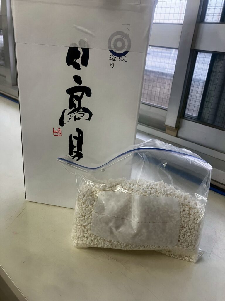 麹は、私の親戚が営んでいる平孝酒造(宮城県石巻市)の平井社長が「子どもたちのためにぜひ使ってください」と、蔵から学校へ生麹を送ってくれました。