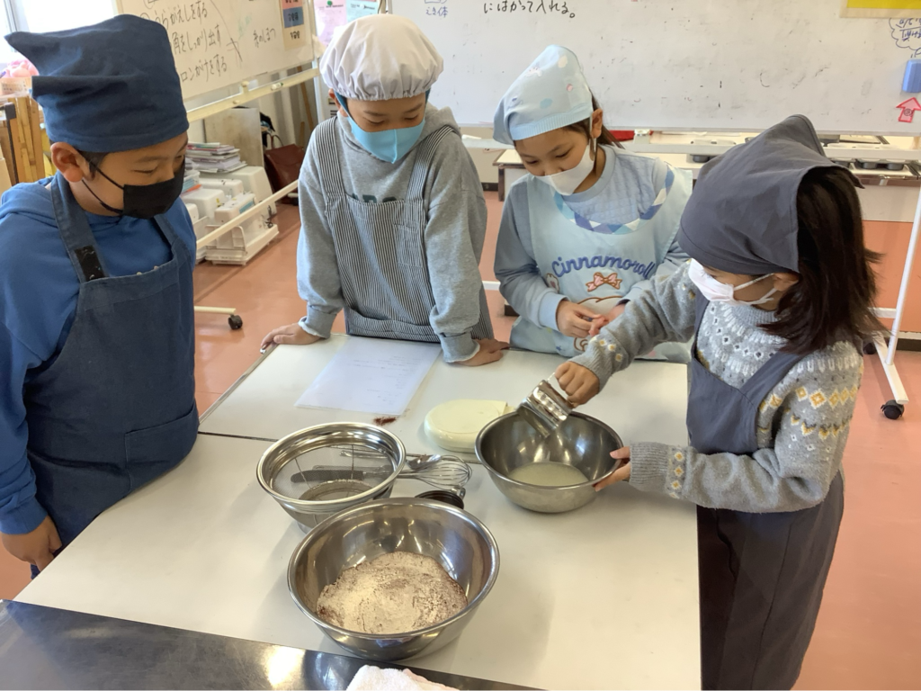卵や牛乳を使わなくても美味しくできるのかと疑問をもつ児童が始めは多かったのですが、実際にノーマルのものとヴィーガン対応のものを作り、食べ比べてみることで、解決しました。