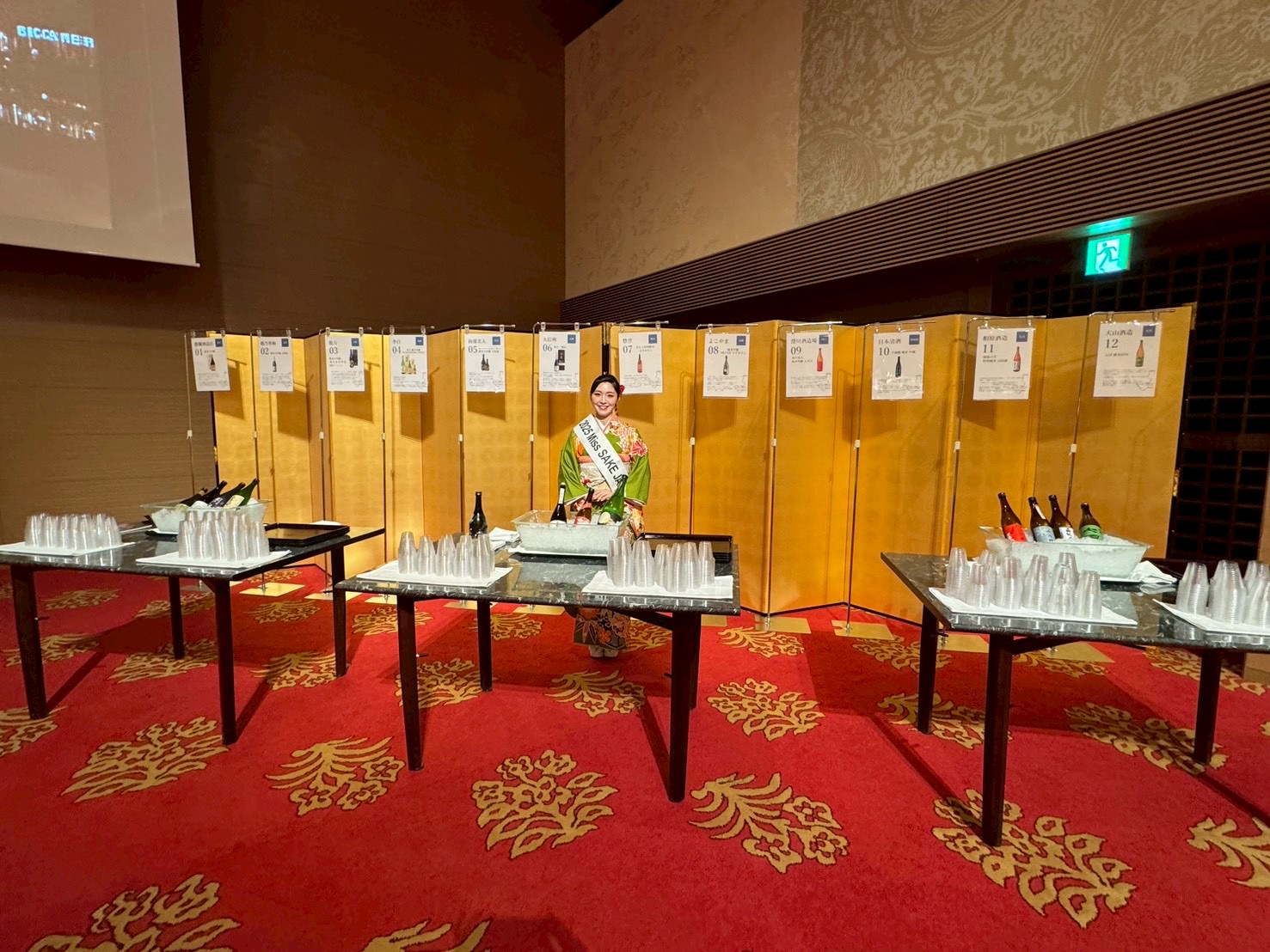この度、オークラ東京(東京都港区)で開催された某企業様主催のレセプションにて、日本酒を提供させていただきました。当日は、2025 Miss SAKE 準グランプリ 弭間花菜とともに参加いたしました。