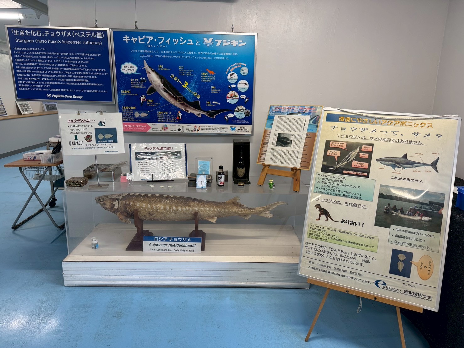 株式会社フジキン様への訪問後には、地元茨城県におけるチョウザメ・キャビア文化を支えている「キャビアの里」(茨城県桜川市)を訪れました。こちらは、有限会社つくばチョウザメ産業 代表取締役 白田正男氏により経営されており、株式会社フジキンで大切に育てられた稚魚から育った親魚から採れるキャビアを直売所およびオンラインで販売しています。産地ならではの鮮度と品質を保ったキャビアを求めて、愛好家が足を運ぶスポットでもあります。
