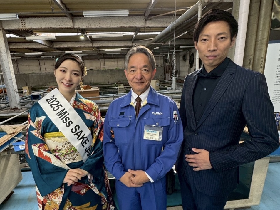 「株式会社フジキン様」にてチョウザメ養殖施設を見学させていただきました – 2025 Miss SAKE Japan 館農知里