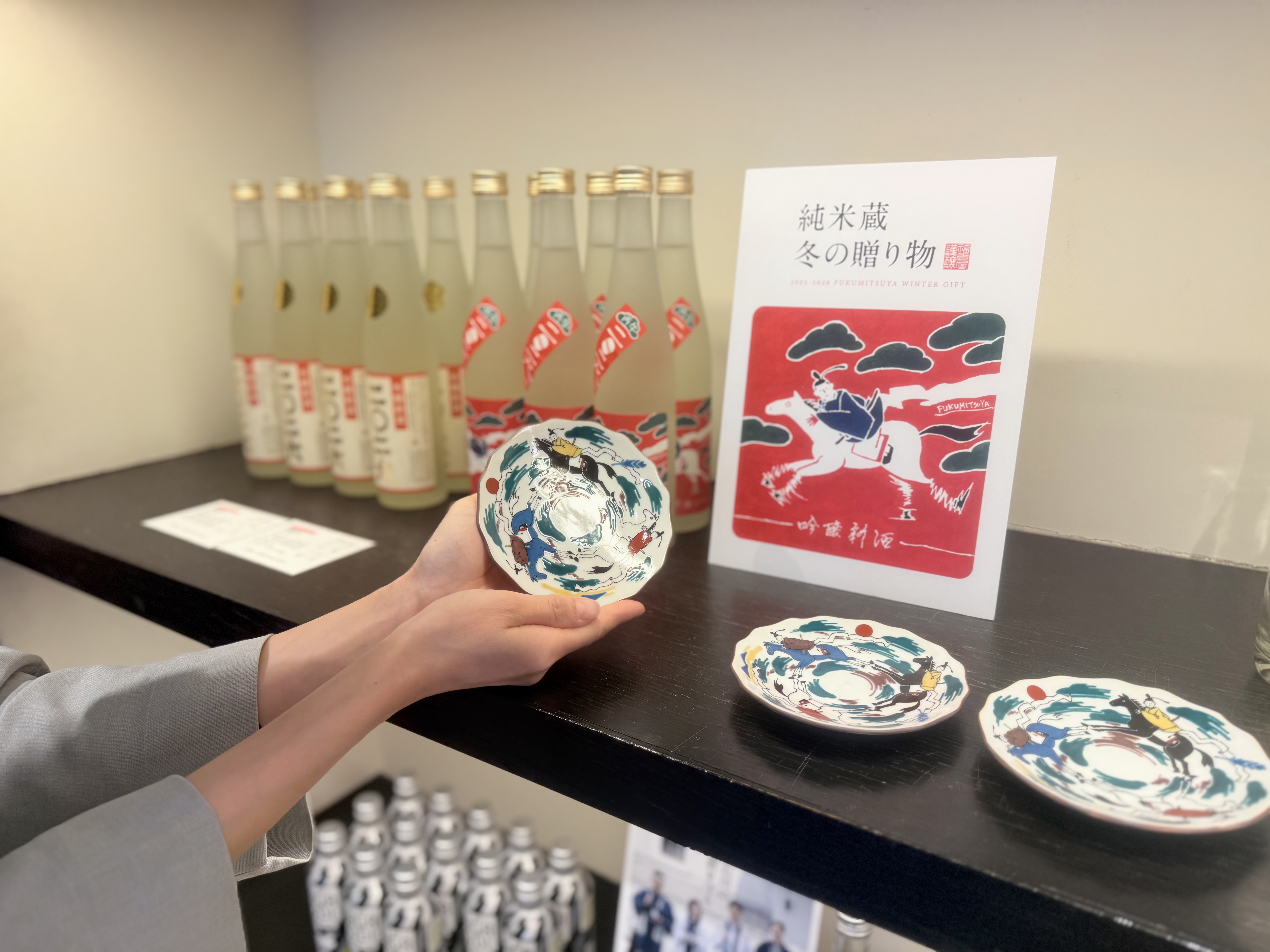 The New Year bottle features an adorable horse motif illustrated by artist Keigo Kamide, and a small dish decorated with the same playful design, titled “Kurukuru Pakkapakka,” was also available in limited quantities. I couldn’t help but be charmed by its whimsical and lighthearted world.