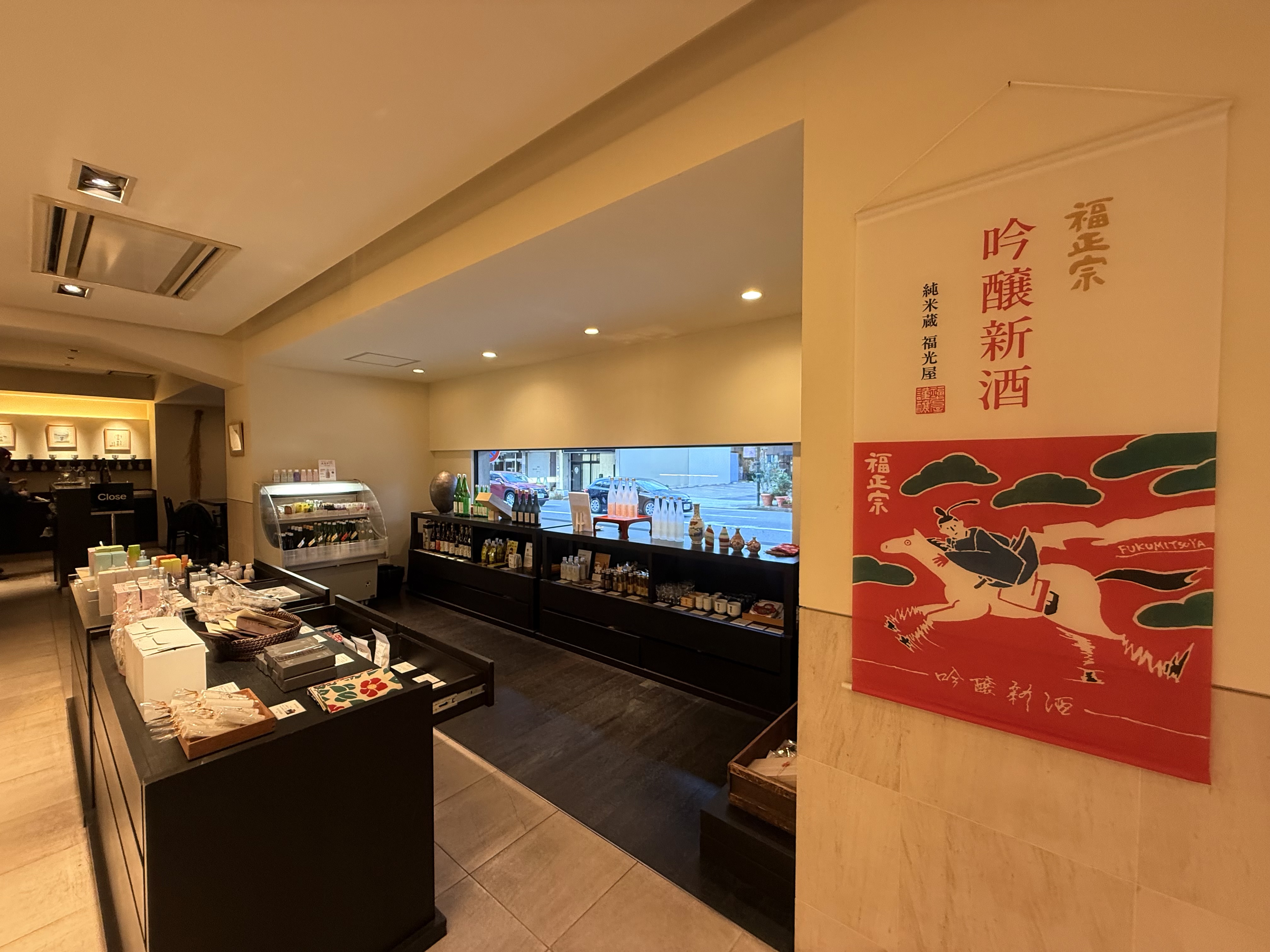 We then moved to the “SAKE SHOP Fukumitsuya,” located next to the brewery. The shop was lively with many international visitors, and guests enjoyed tasting various labels while selecting their favorites. As it was the season when freshly pressed sake fills the shelves, many guests purchased several bottles to take home as gifts.