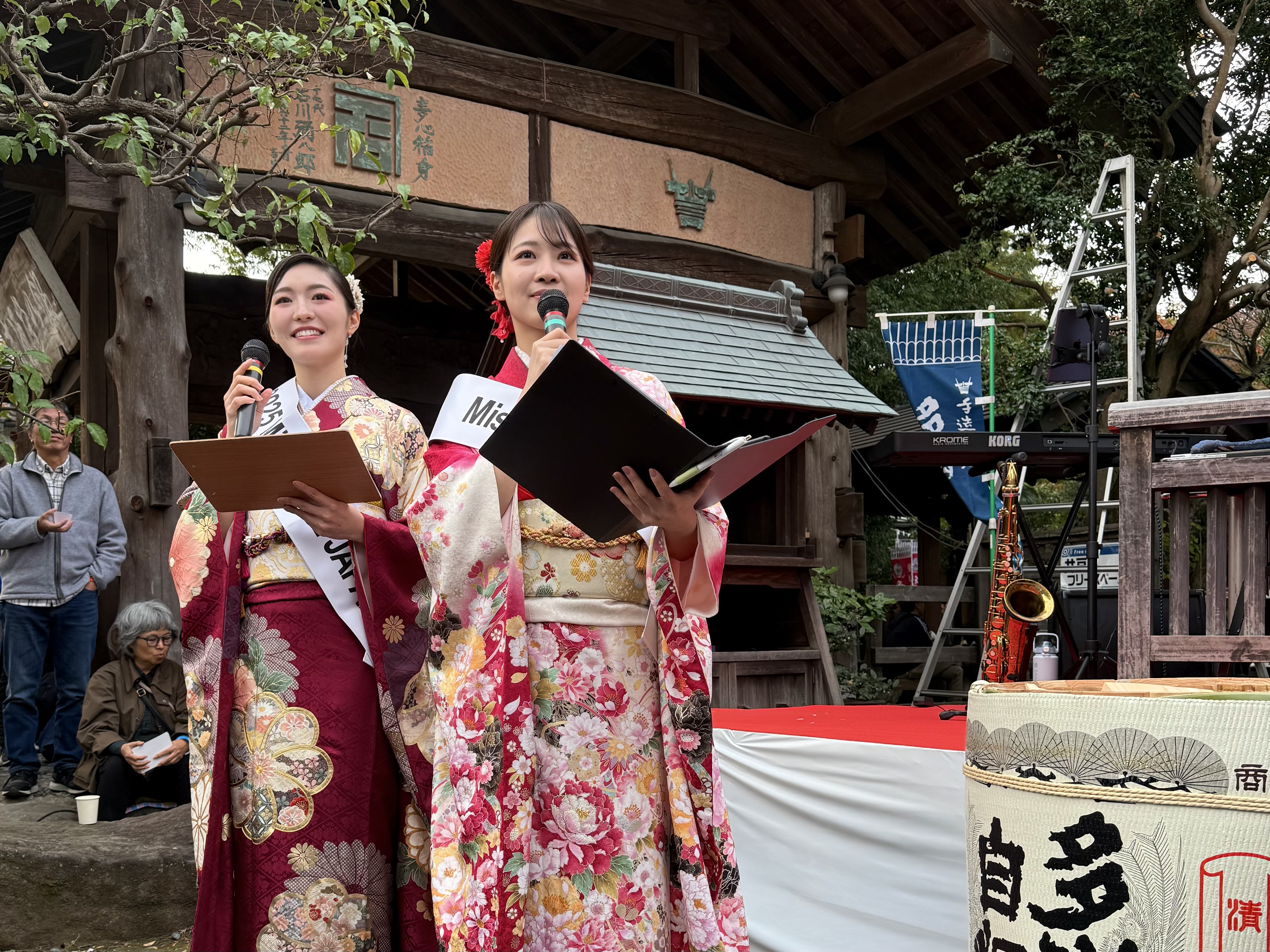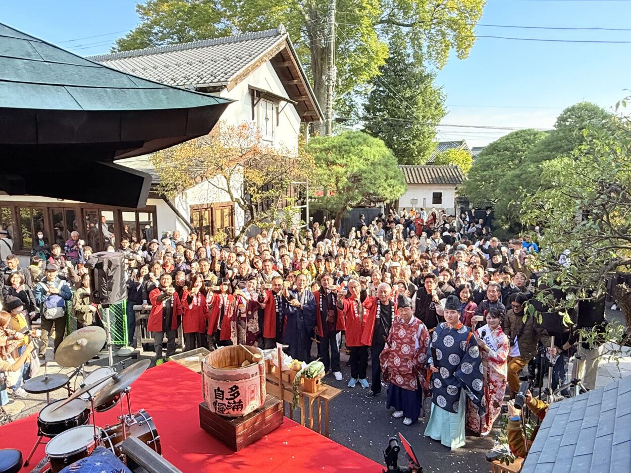 During the kagami-biraki, President Yahachiro Ishikawa and the Vice Chairman of the Haijima Station Shopping District joined six randomly selected visitors for the ceremony. With a resounding “Yoisho! Yoisho! Yoisho!” the wooden lid was broken open, and sake was poured directly from the barrel for a group toast. Sharing this joyous moment with so many participants was a truly special experience.