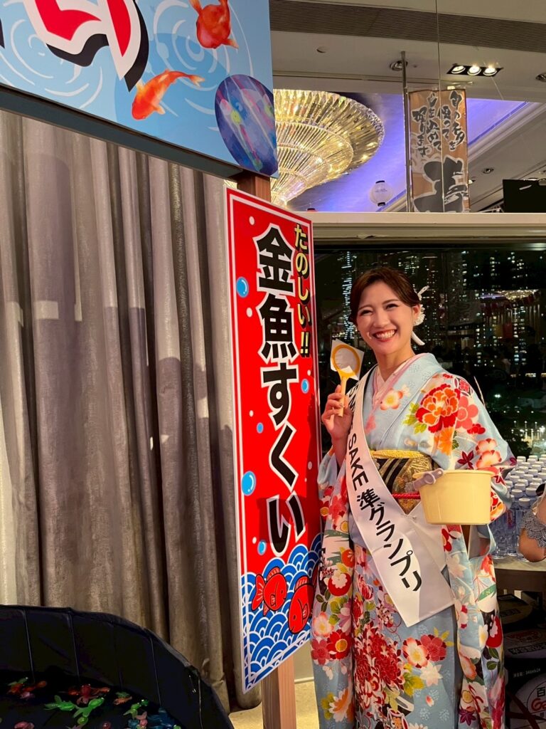 そして、祇園祭をモチーフとした会場では、なんと来場のお客様が実際に日本酒をテイスティングしながら、屋台や金魚すくいなどのアクティビティを楽しむことができます!日本ならではのお祭り文化を味わうことができました。