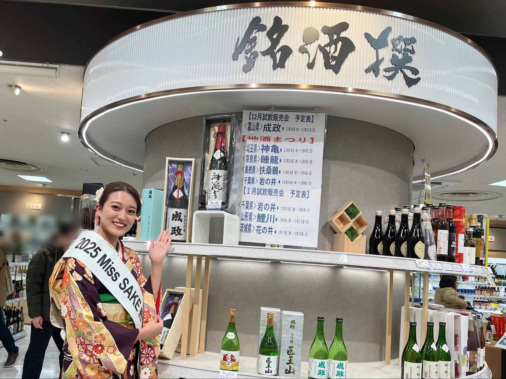 当日は振袖を着て店頭に立たせていただいたこともあり、「きれいですね」「千葉のお酒なんですね」と、たくさんのお客さまにお声がけいただき、日本酒をきっかけに自然と会話が生まれ皆様が笑顔になる時間がとても嬉しかったです。お酒の感想を直接伺えたり、手に取っていただく瞬間に立ち会えることは、販売会ならではの喜びだと感じました。