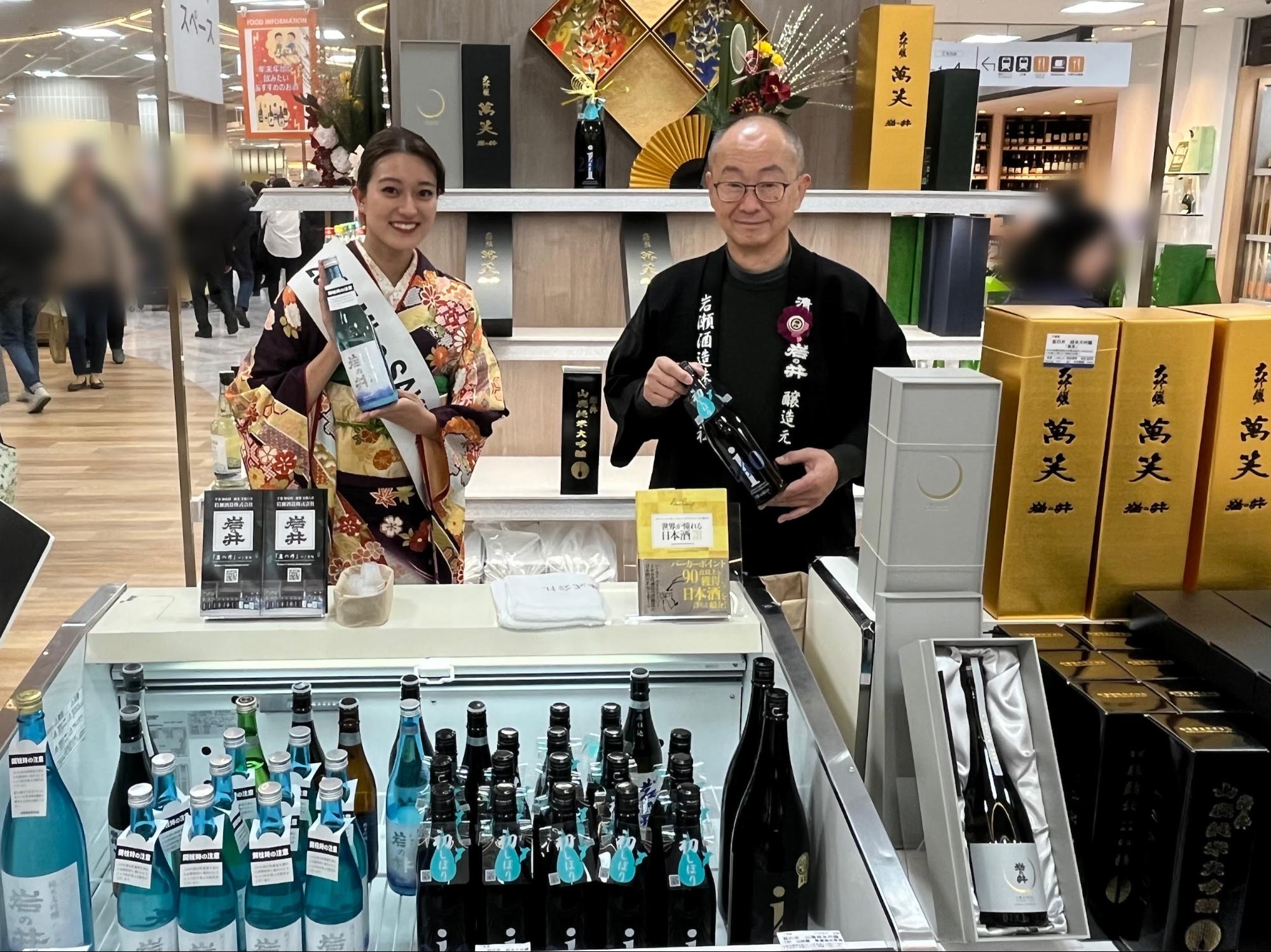 この度私は、千葉県・東武百貨店船橋店内にある「銘酒撰」さまにて、千葉県御宿町にある岩の井の醸造元 岩瀬酒造さまの試飲販売会のお手伝いをさせていただきましたのでご報告させていただきます。