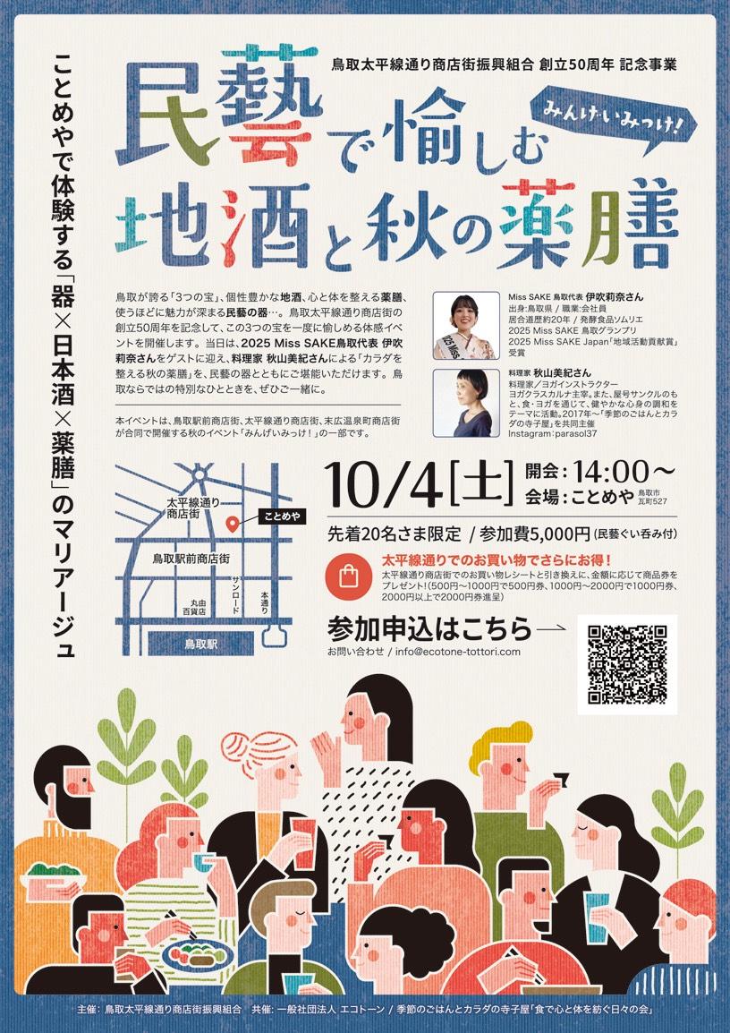 2025年10月4日、鳥取市にある「ことめや」にて、『民藝で愉しむ 地酒と秋の薬膳』が開催されました。