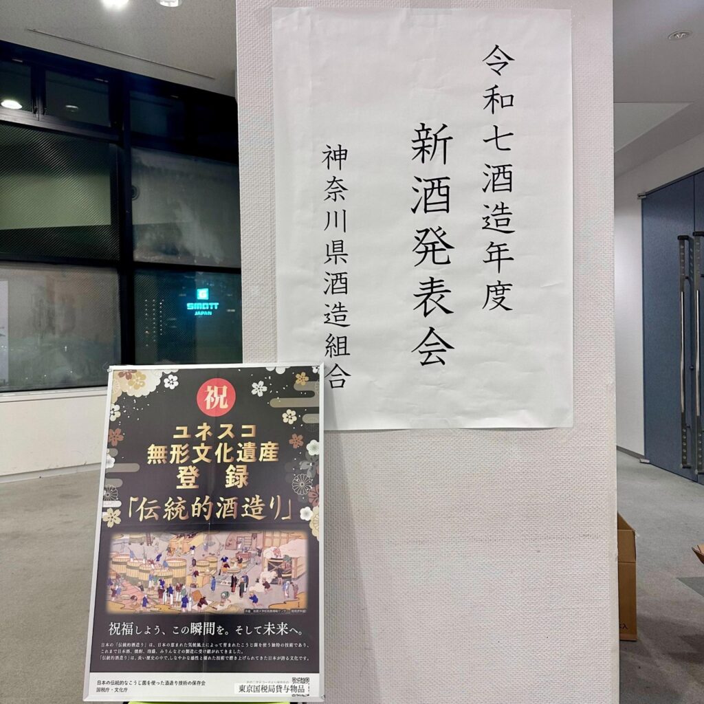 会では、神奈川県酒造組合の11の酒蔵の新酒試飲会が開催され、それぞれの蔵元から今年の新酒について直接お話を伺いながら、出来立ての一杯をいただくという、大変贅沢で学びの多い時間を過ごさせていただきました。