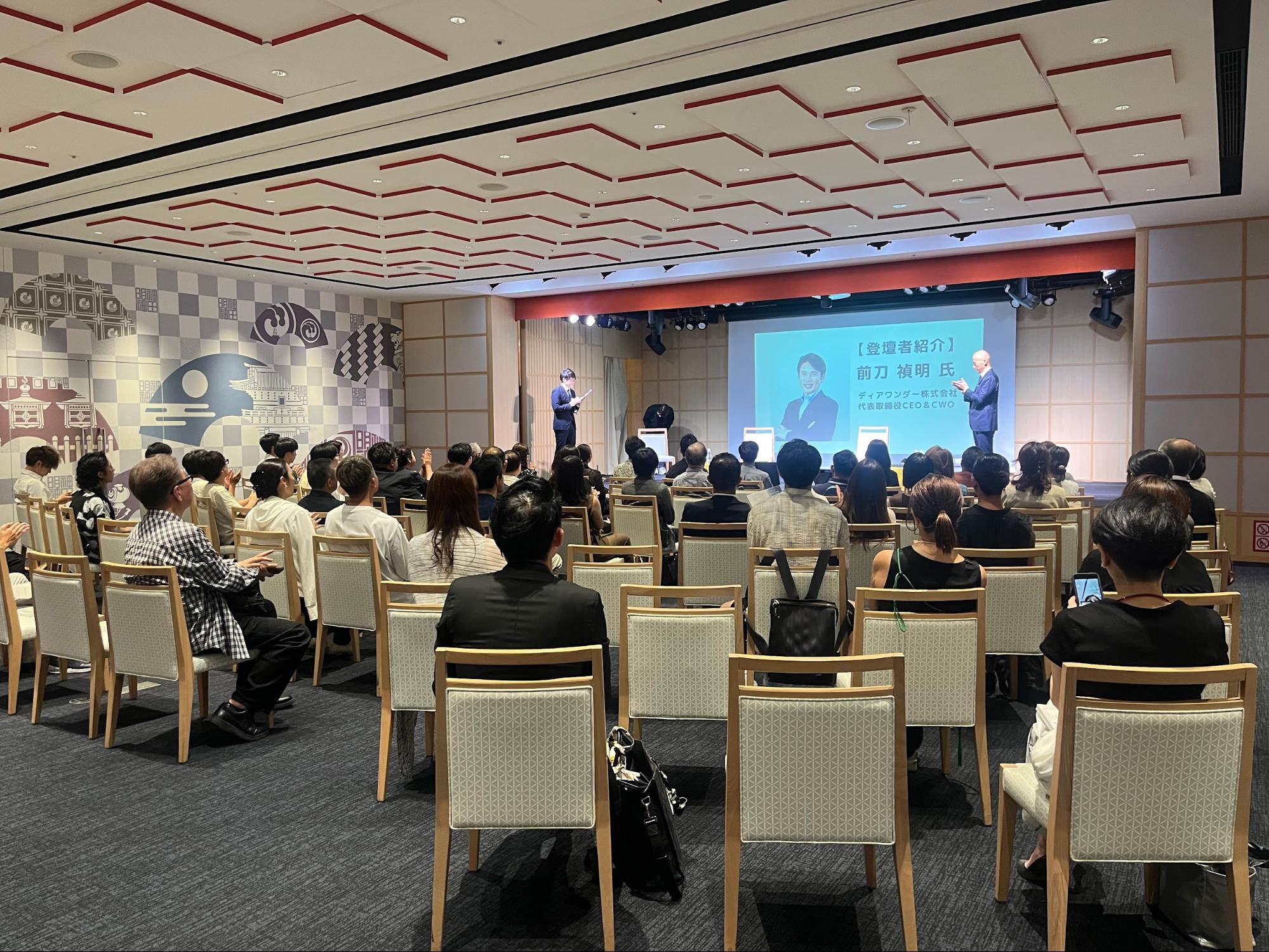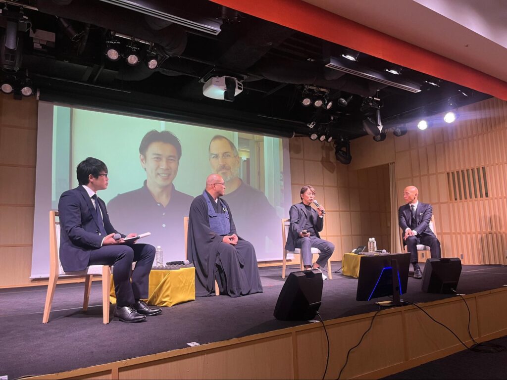 ご登壇されたのは、元Apple米国副社長でディアワンダー株式会社 代表取締役CEO&CWO 前刀禎明様、四天王寺 第54世住職 倉島隆行様、浄土真宗 慈徳山 得藏寺 第23世住職であり著述家の愛葉宣明様の3名です。