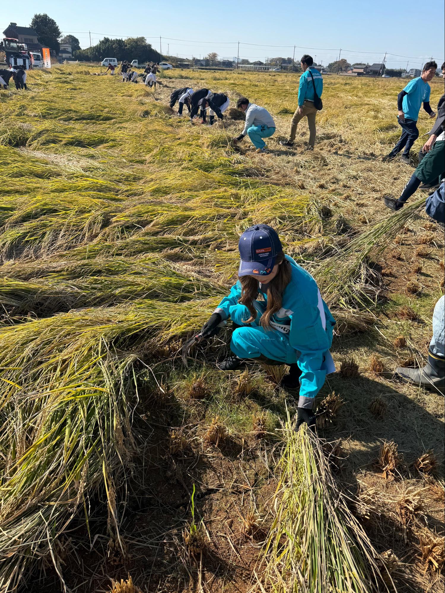 実は作業に夢中で、周りの皆さんとお話しする機会があまりなかったのですが、同じ空の下、同じ田んぼで、同じ稲に向き合っていたあの時間は、今思い返してもとても心に残っています。