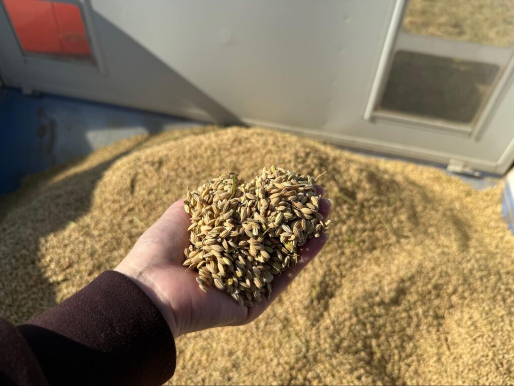 そして、Kubota様の機械で脱穀し、実際に お米の“粒”だけが手のひらに乗った瞬間――