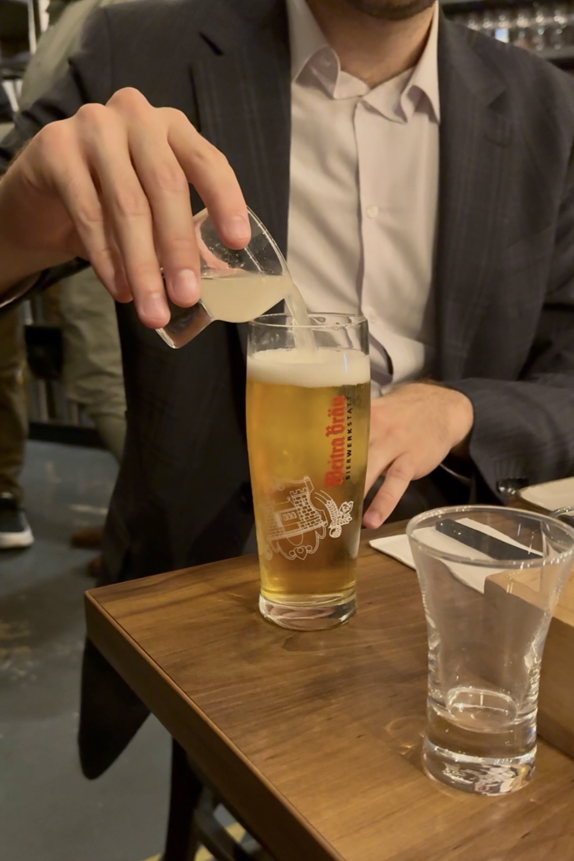 As an aperitif, we first enjoyed Yuzushu, a liqueur made from the fragrant citrus fruit yuzu. Later, on Hugo Chan’s recommendation, we tried a cocktail made by mixing Yuzushu with draft beer. It offered a refreshing and fruity twist, reminiscent of the “Radler” popular in Austria. This creative combination of food and drink made for a truly special memory.