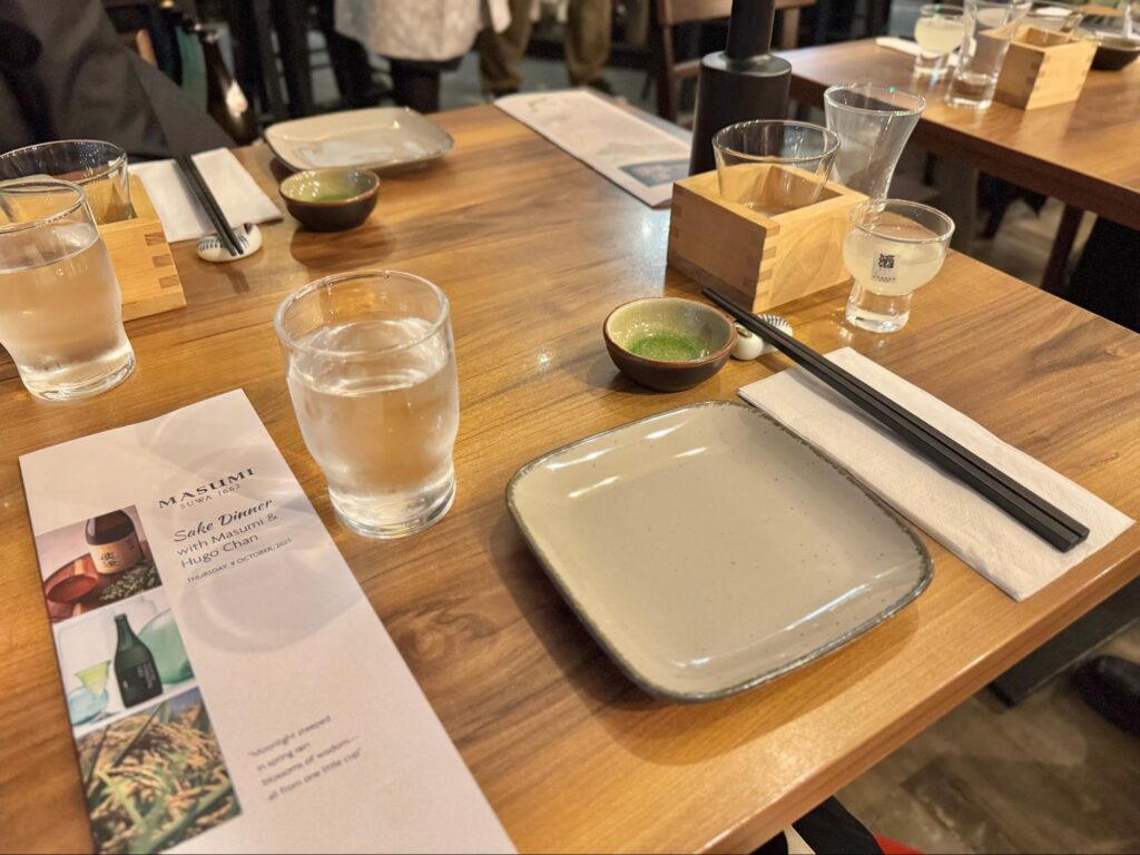 Various Sake vessels were provided, including glasses, Ochoko cups, and traditional wooden Masu, allowing participants to experience how the shape of the vessel can subtly influence the aroma and flavor—a truly sensory experience.