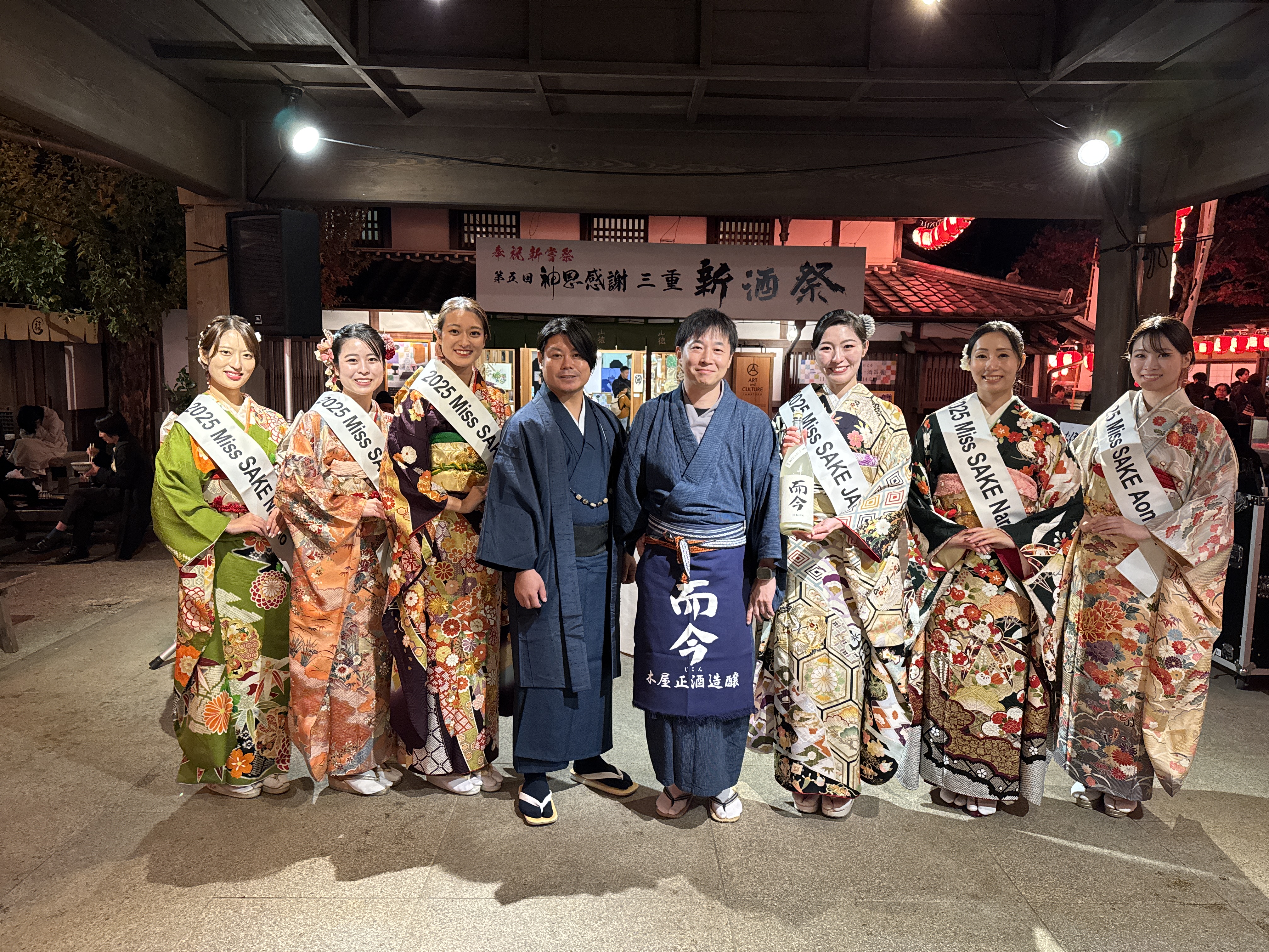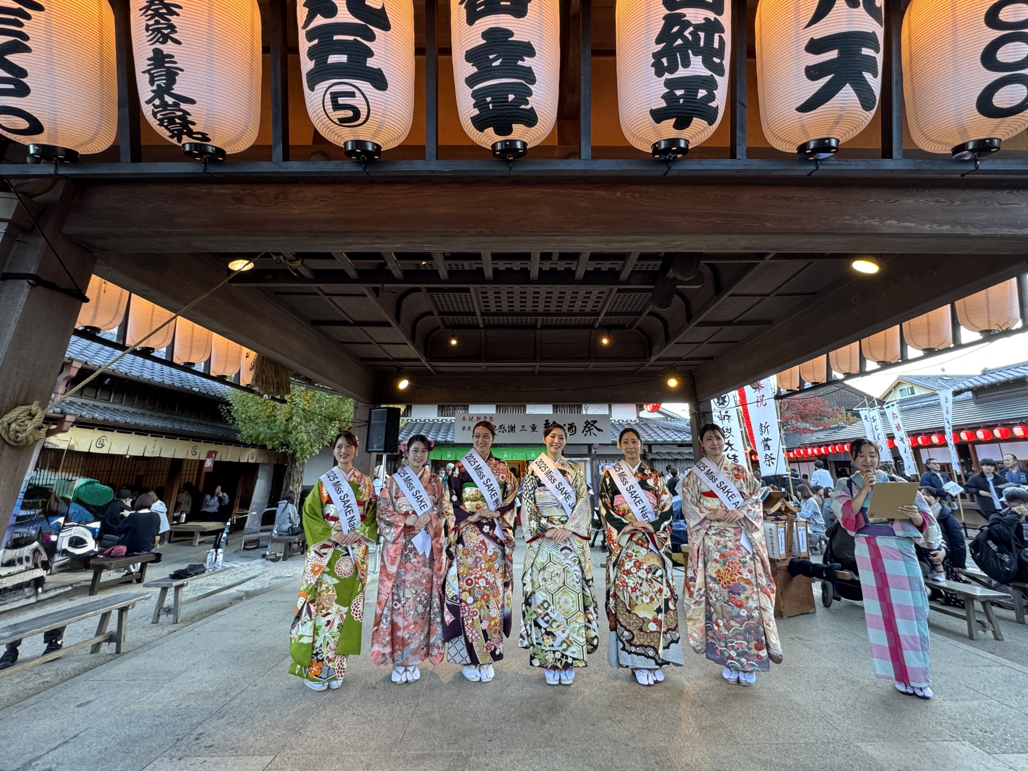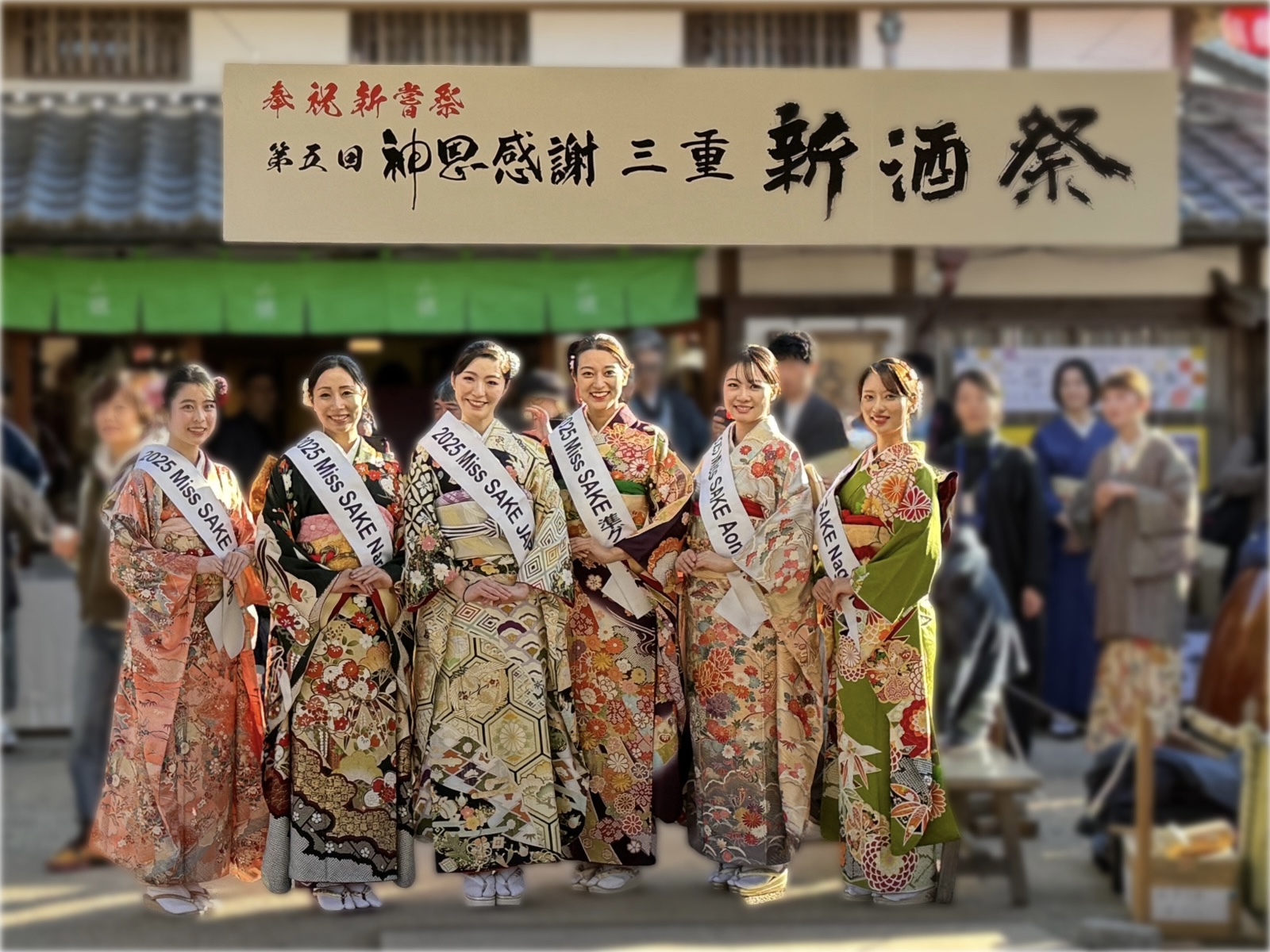 11月23日(日)、伊勢内宮前おかげ横丁(三重県伊勢市)にて開催された「奉祝新嘗祭 第五回神恩感謝 三重新酒祭」に、以下 2025 Miss SAKEメンバー6名で参加させていただきました。当日は会場内を周遊し、来場者の方々と交流しながら、各蔵自慢の新酒を振舞わさせていただきました。