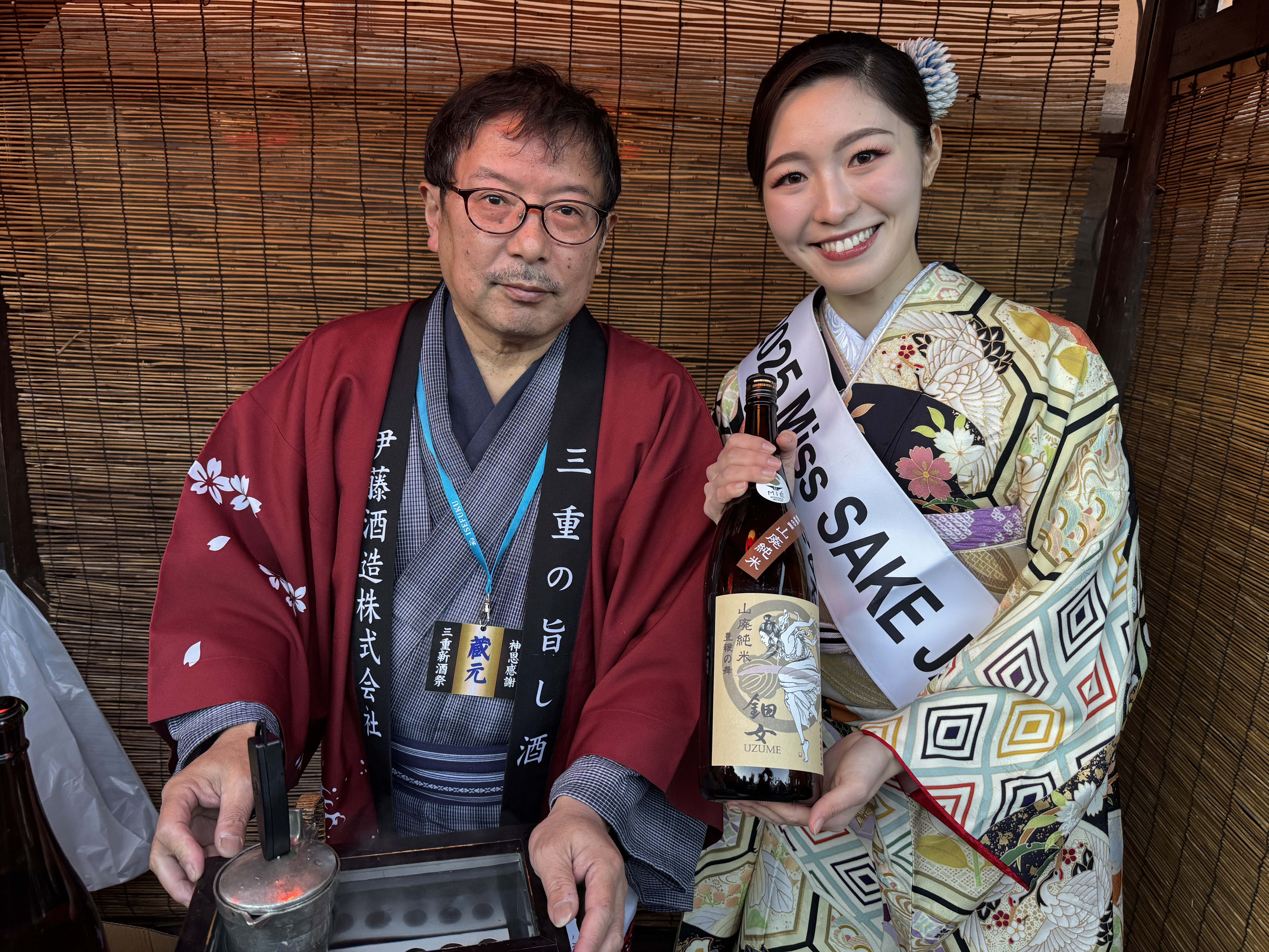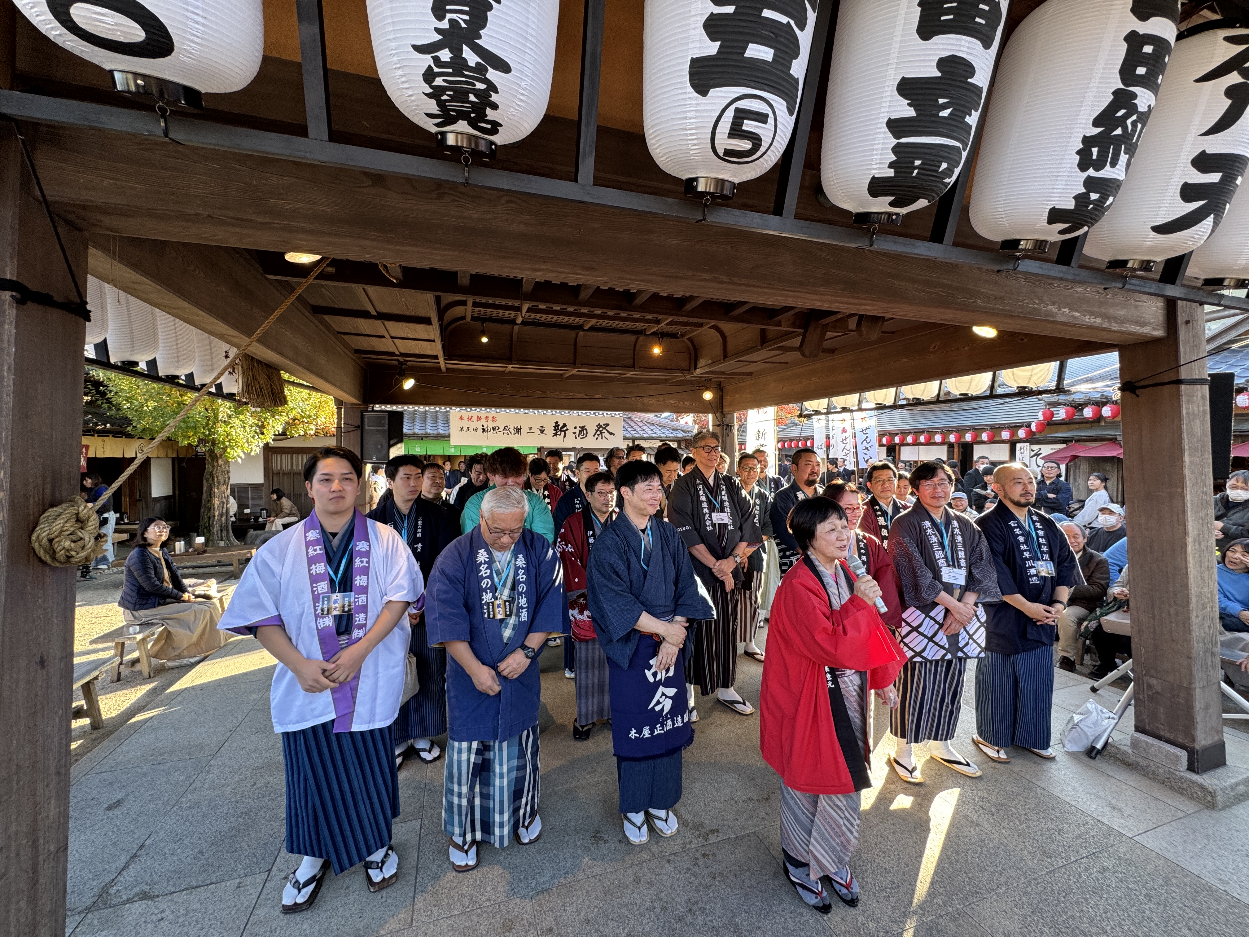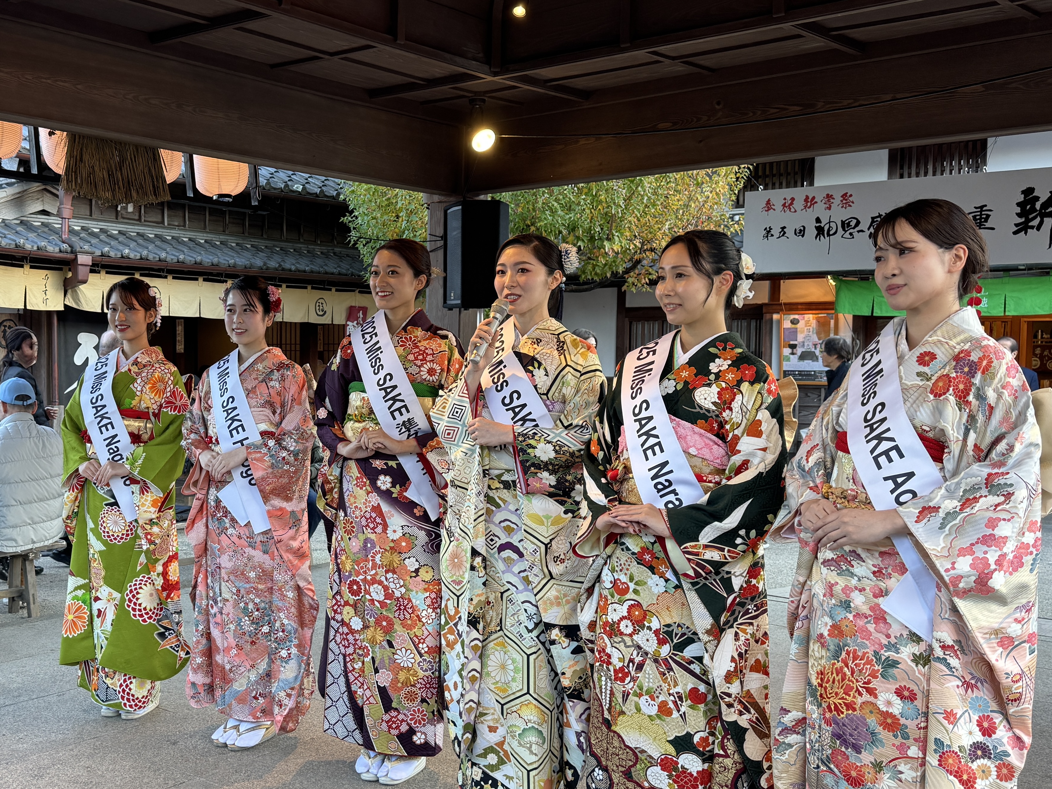 11月23日(日)、伊勢内宮前おかげ横丁(三重県伊勢市)にて開催された「奉祝新嘗祭 第五回神恩感謝 三重新酒祭」に、以下 2025 Miss SAKEメンバー6名で参加させていただきました。当日は会場内を周遊し、来場者の方々と交流しながら、各蔵自慢の新酒を振舞わさせていただきました。