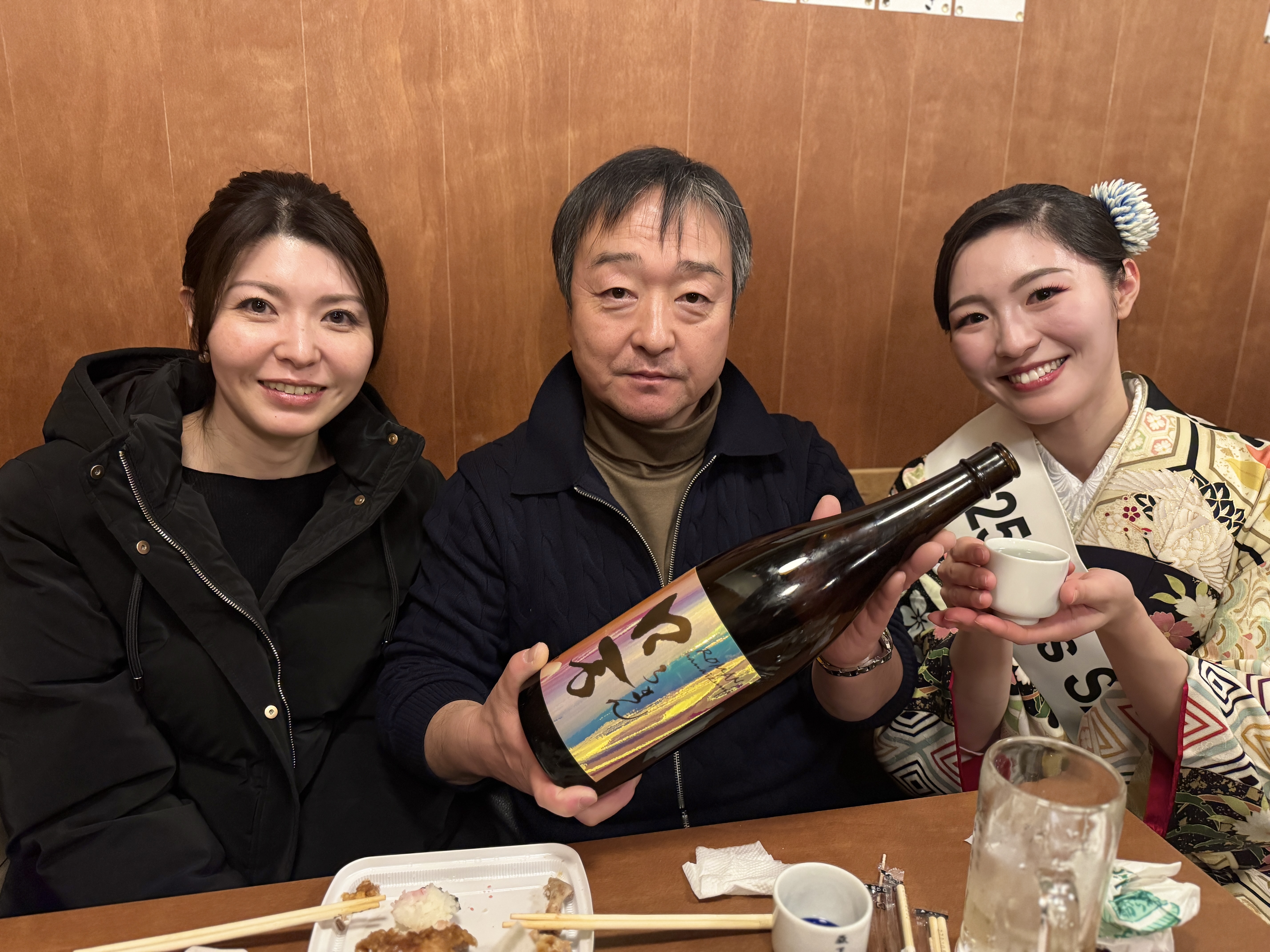 イベント終了後は、蔵元の皆様とともに懇親会に参加させていただきました。冒頭では、Miss SAKE一名ずつマイクを手に取り、自己紹介とともに本日の振り返りを述べる時間をいただきました。蔵元の方々の温かな空気感に包まれながら、日頃の感謝やMiss SAKEとしての今後の抱負をお伝えさせていただきました。その後は、日頃から酒造りの現場を支える方々から、丹精込めて仕上げた新酒を直接頂きながら、それぞれの一杯に宿る物語を聞かせていただきました。談笑が交わされる和やかな空気の中にも、ときおり酒造りに向き合う真摯な眼差しや、技を磨き続けるプロフェッショナルな姿勢が感じとられ、その言葉に深く心を打たれました。この対話を通して、Miss SAKEとして、単に日本酒の魅力を伝えるだけではなく、蔵元が紡いできた歴史や土地の文化、そこに生きる人々の情熱を「生の声」として届けることの重要性を強く実感いたしました。