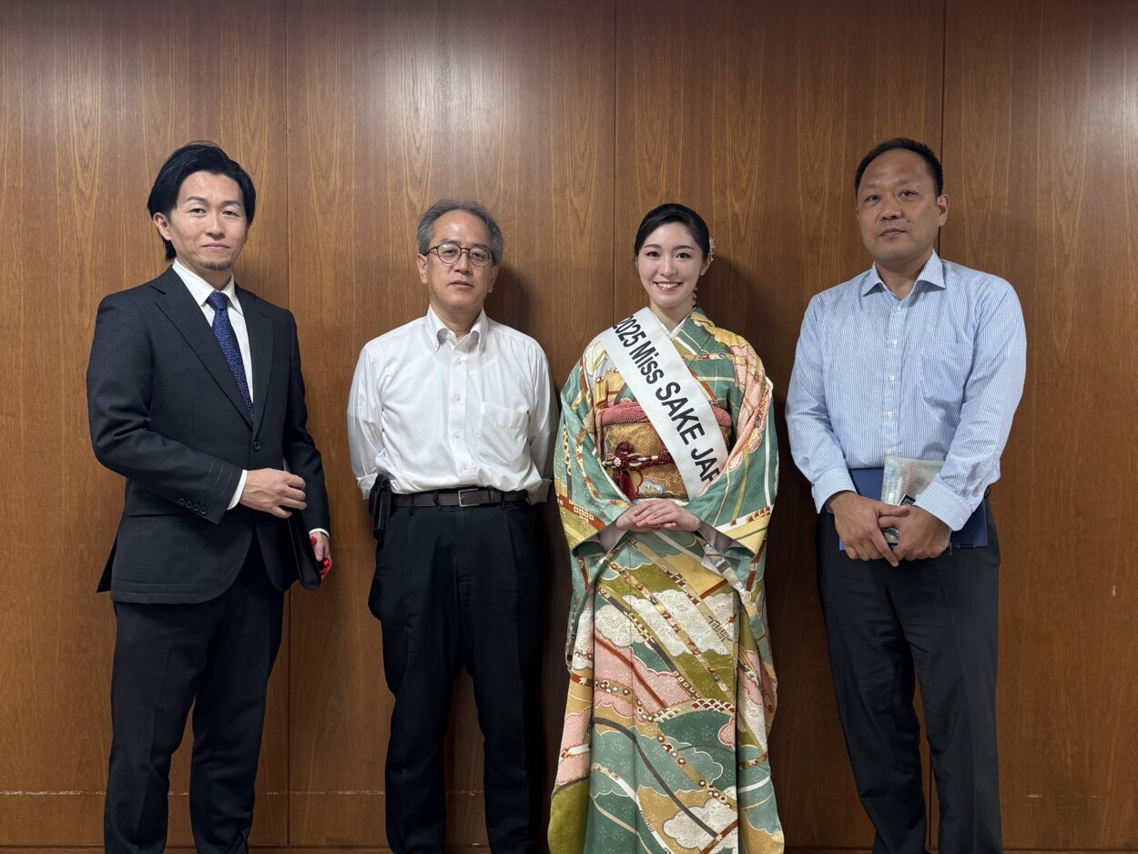 皆さま、こんにちは。2025 Miss SAKE Japan 館農知里です。9月30日(火)、 農林水産省様を表敬訪問し、農林水産省 輸出・国際局 新興地域グループ グループ長・参事官 諸永裕一氏、国際交渉官 嶋田光雄氏に、Miss SAKE就任のご挨拶をさせていただきました。なお、株式会社uA 代表取締役社長 臼倉斉史氏にもご同行いただきました。
