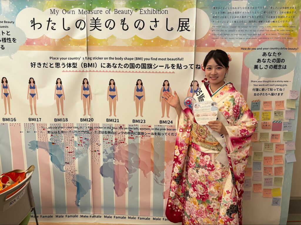 また、大屋根リングの下で、外国人の来場者を中心に「わたしの美のものさし展」のアンケート収集を行いました。 現在、日本人女性の“過度な痩せ志向”が、健康を損なうレベルにまで達しているという問題が指摘されています。 そこで、理想の体型や美意識について、海外の方々の考えを聞くことで、日本人が持つ美の基準や健康意識に新たな視点を取り入れようという試みです。 さまざまな国籍の方にご協力いただき、各国の意見を集めることができました。 ご協力いただいた皆様、ありがとうございました。