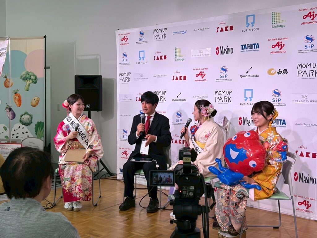 当日は展示に加え、ブース内にて3回のトークショーが行われ、私は呼び込み活動と、14:00から開催された第3回目のトークショーのMCを担当させていただきました。 呼び込みでは、ラブテリ様とMiss SAKEのコラボうちわを手に、特に女性の皆さまに向けて積極的にお声がけを行いました。 14:00からのトークショーでは、サケ・エッジ株式会社 代表取締役で、Miss SAKE 長野大会の主催もされている竹久健様をお迎えし、「発酵食品と健康」をテーマにお話をうかがいました。 竹久様は、歴代のMiss SAKE長野代表と共に日本酒とのコラボレーションを実施される他、日本酒と女性の関わりについて深く取り組まれており、今回は日本酒のこれからの可能性について多くの示唆をいただきました。 「これからの日本酒業界の発展には、女性の力が欠かせない」—— そんな言葉が印象的で、大変貴重な学びの時間となりました。竹久様、ありがとうございました。