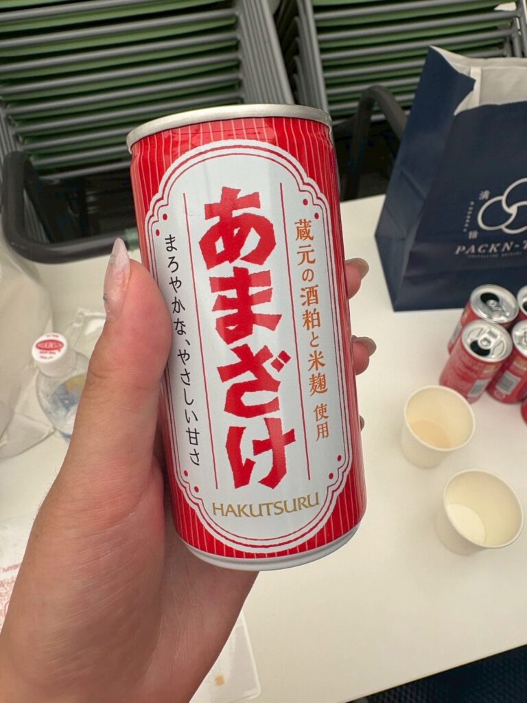 トークショー中には、ご来場いただいた方に冷たい甘酒のご提供を行いました。 “飲む点滴”とも称される甘酒は、熱中症予防にも効果的。今回ご提供されたのは白鶴酒造様の甘酒で、酒粕を使った濃厚で本格的な味わいが特徴です。 私たちも味見させていただきました。冷たく冷やされた一杯は、暑い日差しの中でもさっぱりとした口当たりで、甘さも程よく、とても美味しかったです。