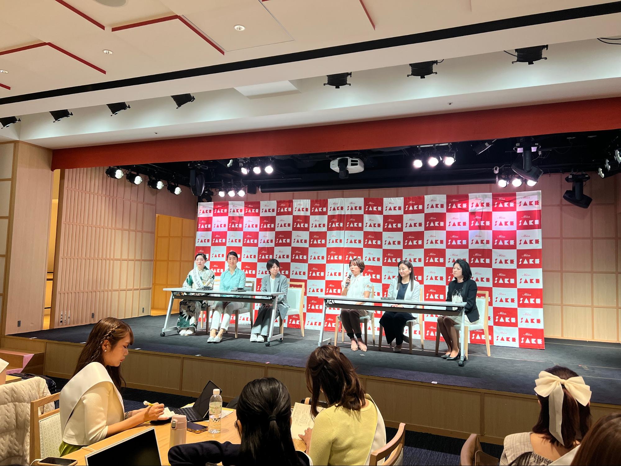プログラムの最後には、講師の皆様に加え、大西美香代表、2025 Miss SAKE Japan 館野知里様、2025 Miss SAKE 準グランプリ 弭間花菜様に登壇いただき、ファイナリストからの質問を受けながらトークディスカッションをして頂きました。大西代表と館野様は海外出張の合間のご参加となり、本当に貴重なお時間をいただいた中でお話を頂きました。