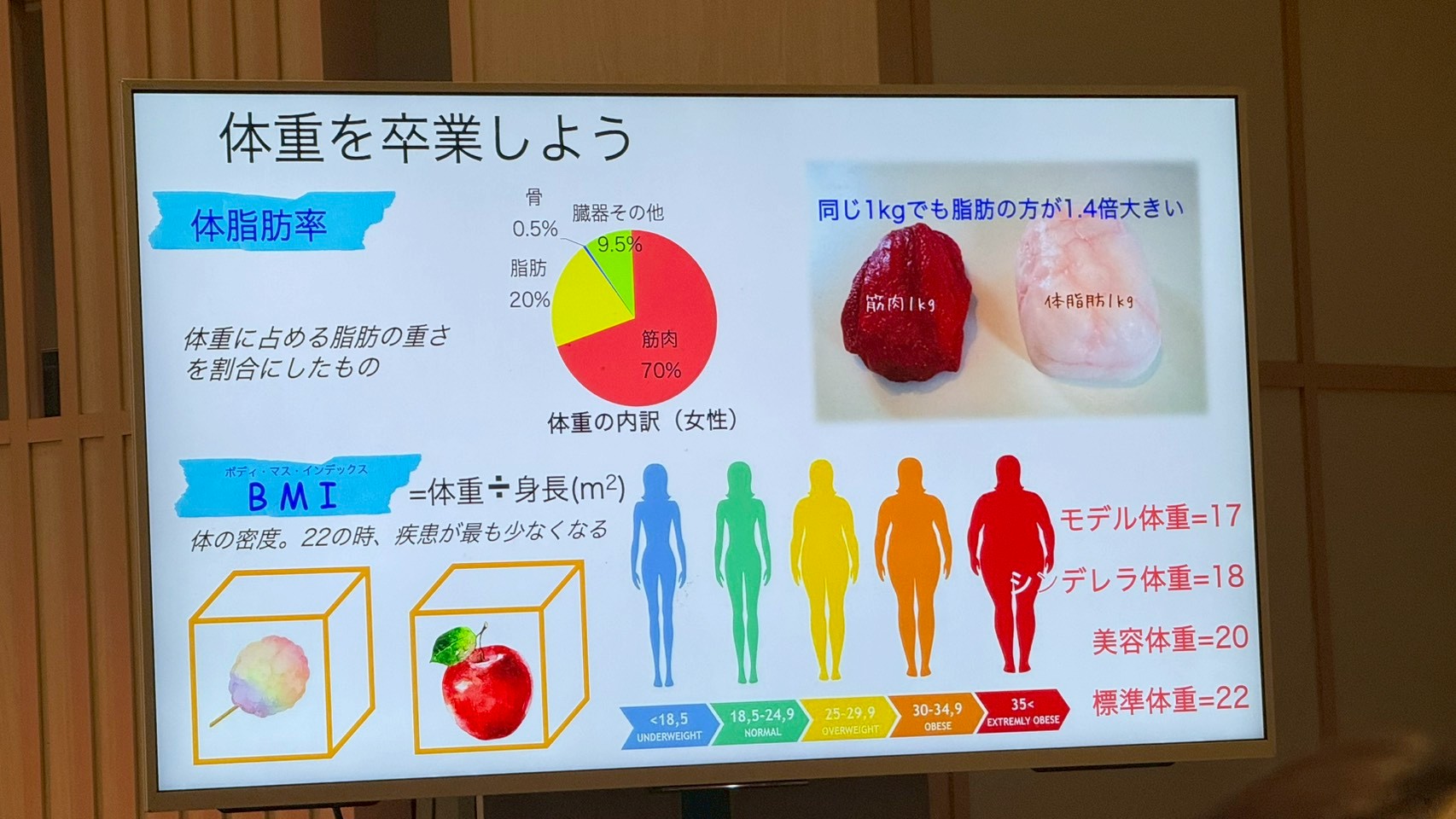 BMIは「モデル体重」、「シンデレラ体重」、「美容体重」とも言われる数値があり、特に近年はBMI18以下を目指す若年女性が増える事象が発生しているそうで、ラブテリの皆様はこの状況に警鐘を鳴らしているそうです。女性の痩せ問題については第2項で詳しく取り上げます。