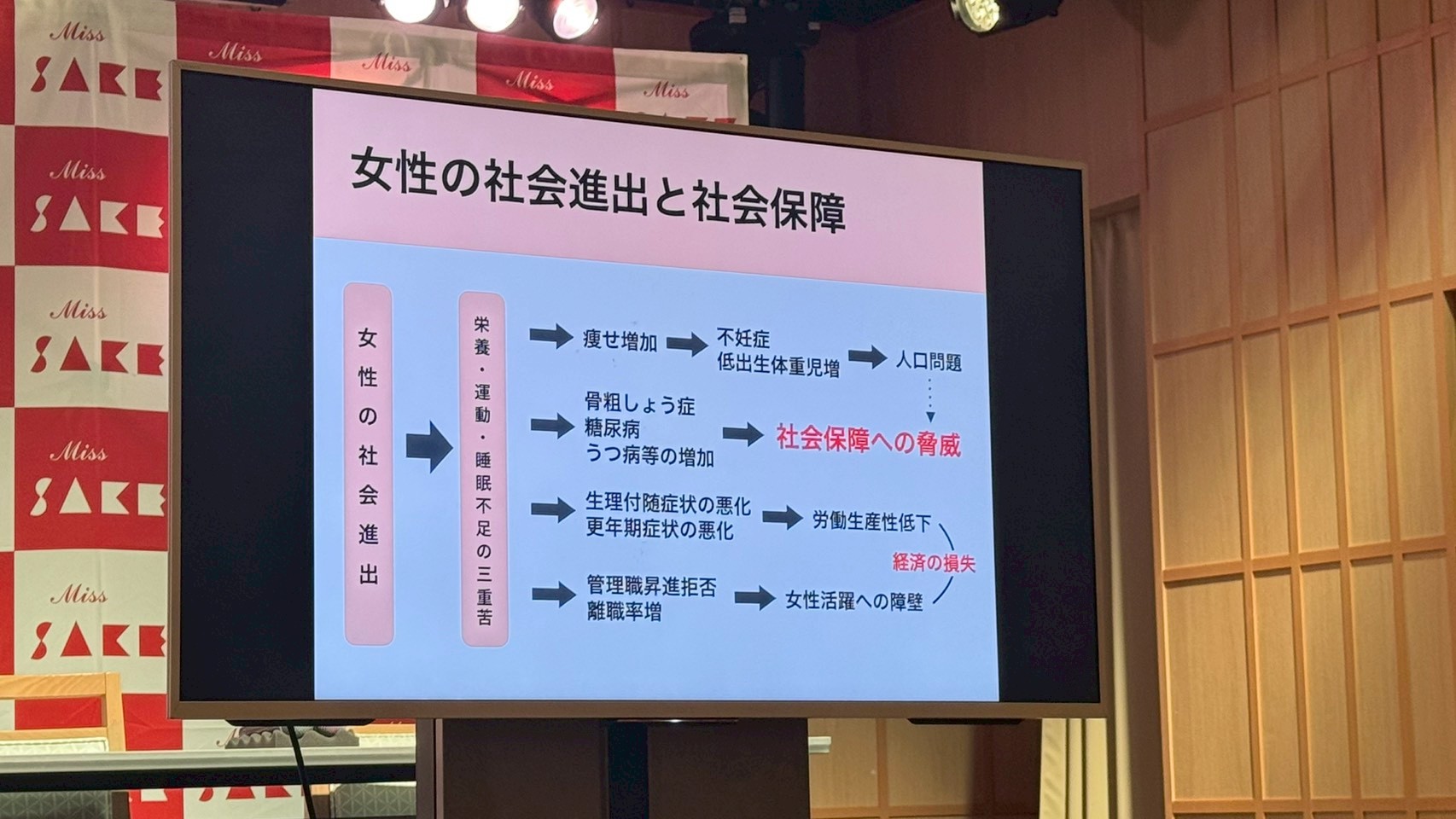 細川様が提示されたデータは衝撃的でした。お母さんの栄養状態(特に痩せ)が、生まれてくる赤ちゃんの出生体重に影響を与え、その子が将来、糖尿病や高血圧などの生活習慣病になりやすくなるという「DOHaD(ドハド)」理論。つまり、私たちの今の食生活は、自分一人の問題ではなく、次世代、さらにはその次の世代の健康まで規定してしまうのです。