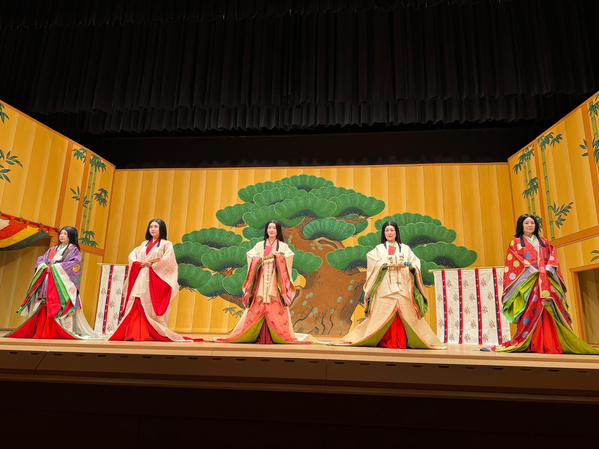 第二部では、源氏物語の世界を装束とともに表現する演出が行われ、空蝉・末摘花の女房・六条の御息所・朧月夜の尚侍・紫の上の人物がそれぞれの役柄に合わせた衣装で登場しました。
