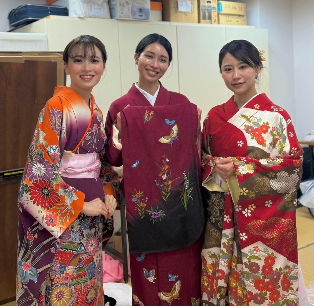 Finally, I participated in a kimono dressing lesson focused on wearing a furisode by myself. Although I had experience dressing others, self-dressing was much more challenging, especially without a mirror. I focused on achieving a beautiful collar, particularly adjusting the neckline and handling decorative collars. With guidance from instructors, I improved my technique, though I found it difficult to execute everything without visual confirmation. I look forward to continuing this training and completing the full dressing process, including the obi, in the next session.