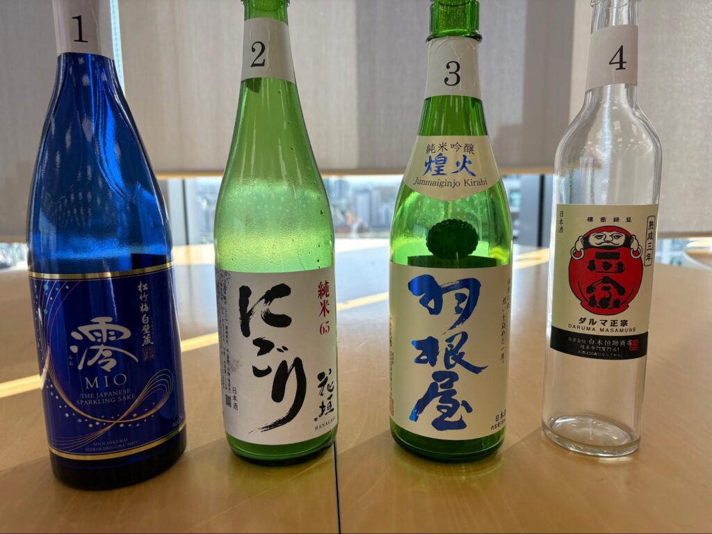 During the tasting session, we evaluated nine different types of sake, including sparkling, nigori, nama, and aged sake, and explored how temperature changes (such as warming) affect flavor. We also learned how different taste elements—such as saltiness, sweetness, acidity, umami, and spiciness—interact with sake, discovering that salt and acidity enhance sweetness, while spicy foods can intensify the perception of alcohol.