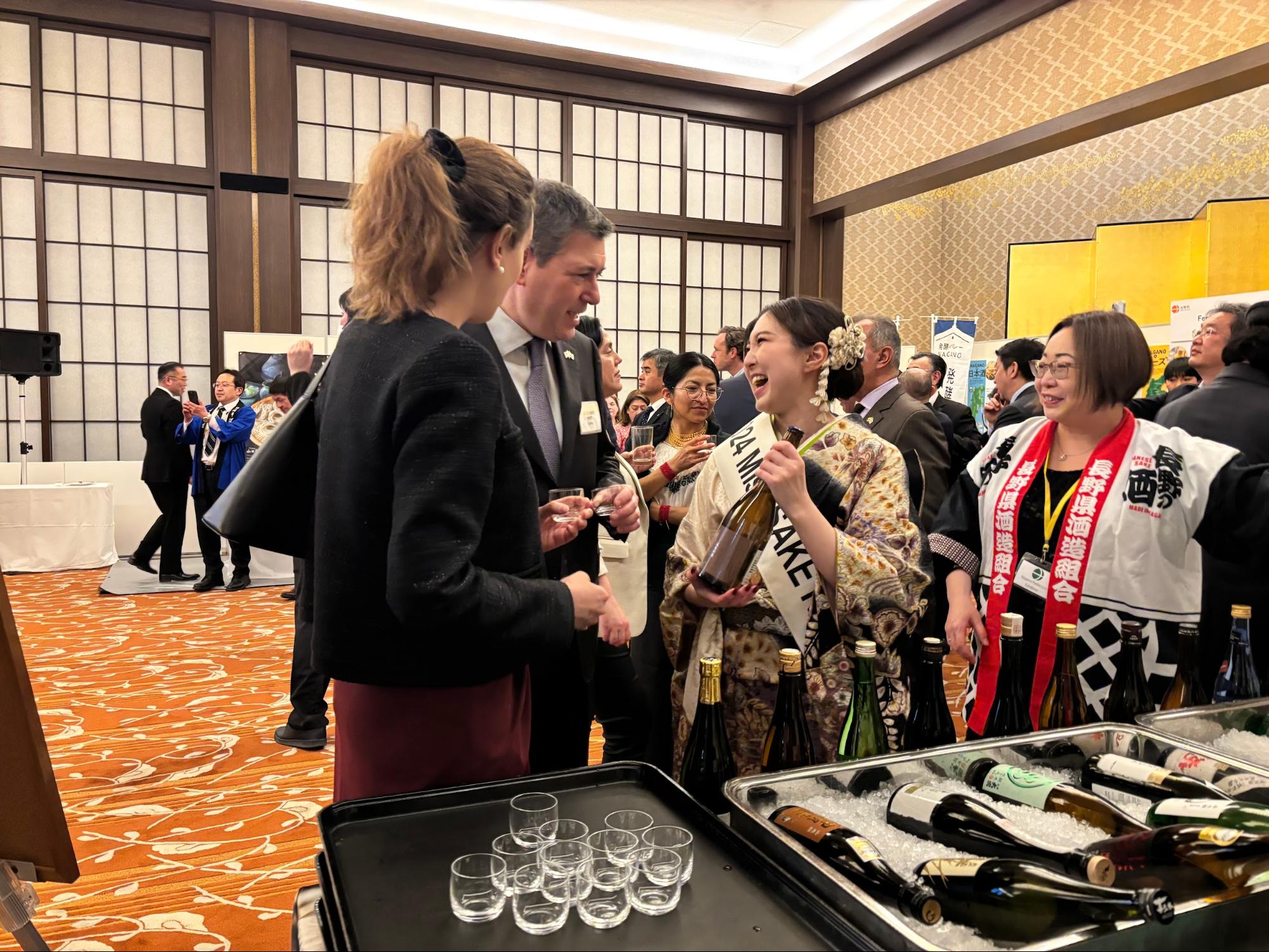 だんだん春の訪れを感じるようになりました3月18日、外務省飯倉公館にて令和6年度地方創生支援・飯倉公館活用対外発信事業・外務大臣及び長野県知事共催レセプションが開催され、日本酒のPRに携わらせていただきました。