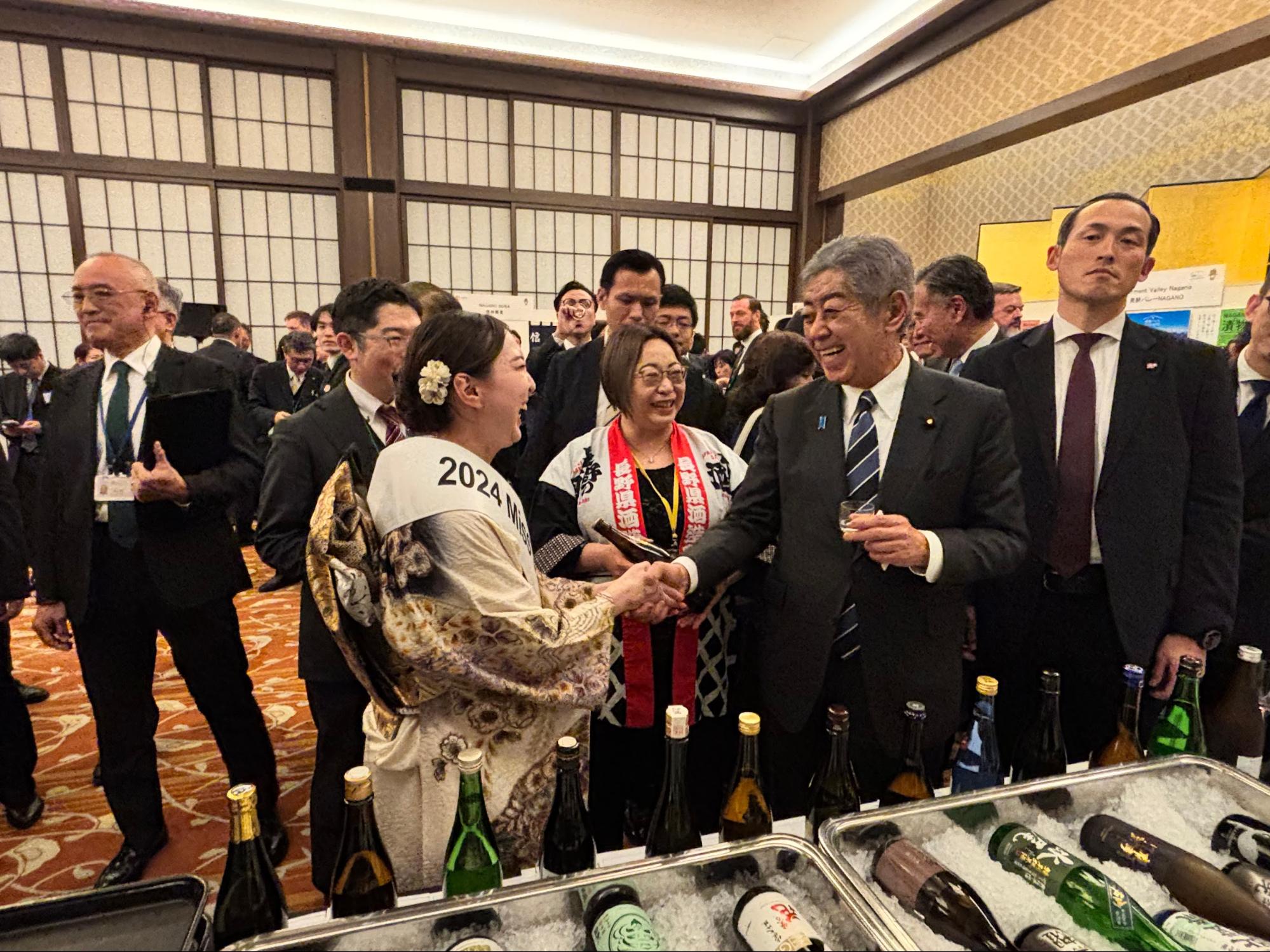 岩屋外務大臣、阿部知事にはIWCで champion SAKEとなった十六代九郎右衛門の生酛純米吟醸を試飲いただき、柔らかな旨味と微かな発泡感を楽しんでいただきました。長野県の地酒が持つ力をお伝えすることができ、またMiss SAKEの活動に激励をいただき、大変光栄でございました。