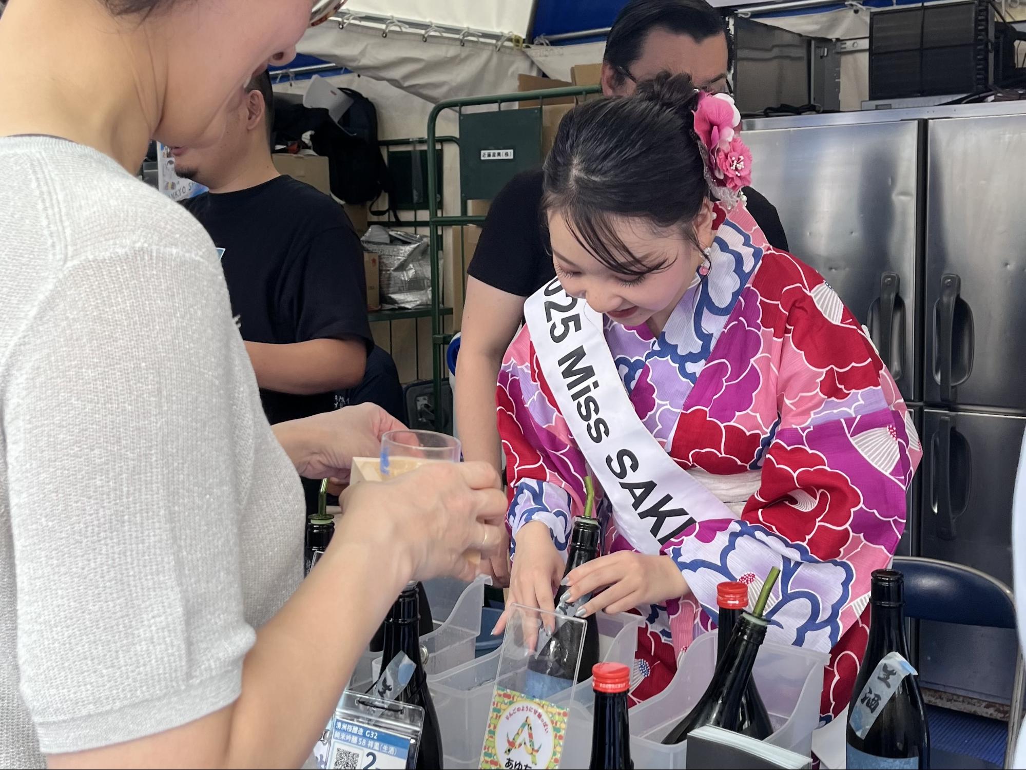 I joined the event on July 19th and 20th, alongside 2025 Miss SAKE Gifu, Yuki Nakamura. Together, we had the honor of serving sake at various brewery booths, leading a toast on stage during the “Kanpai Time,” and introducing the charm of sake from Aichi Prefecture to our guests.