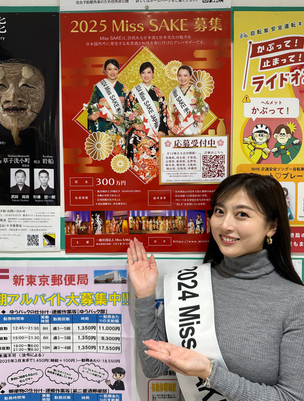 皆様にお知らせがございます。現在2025 Miss SAKE 募集に伴い2024年12月2日からの14日間、募集のポスターが全国5ヶ所の郵便局で掲示されております。