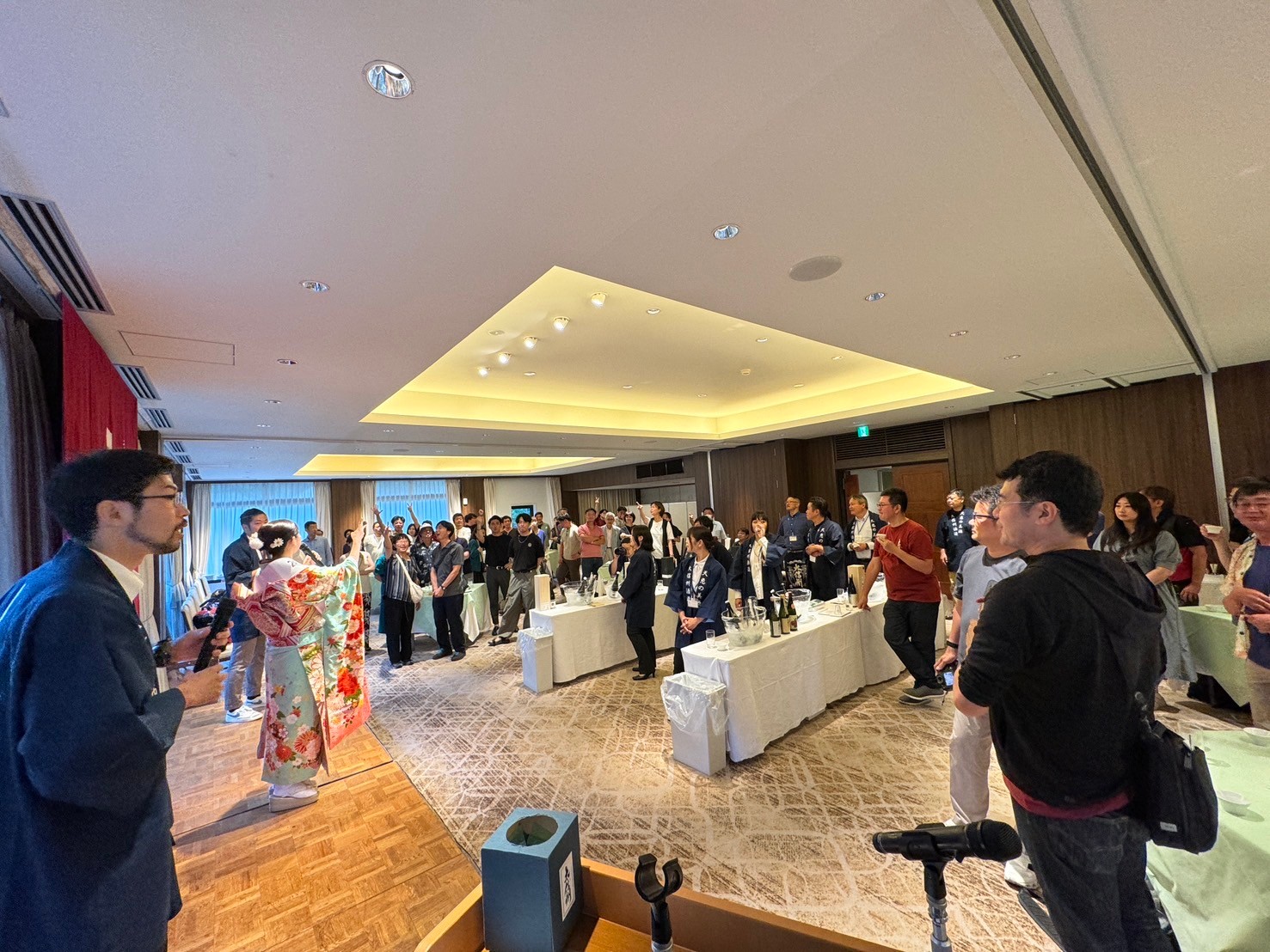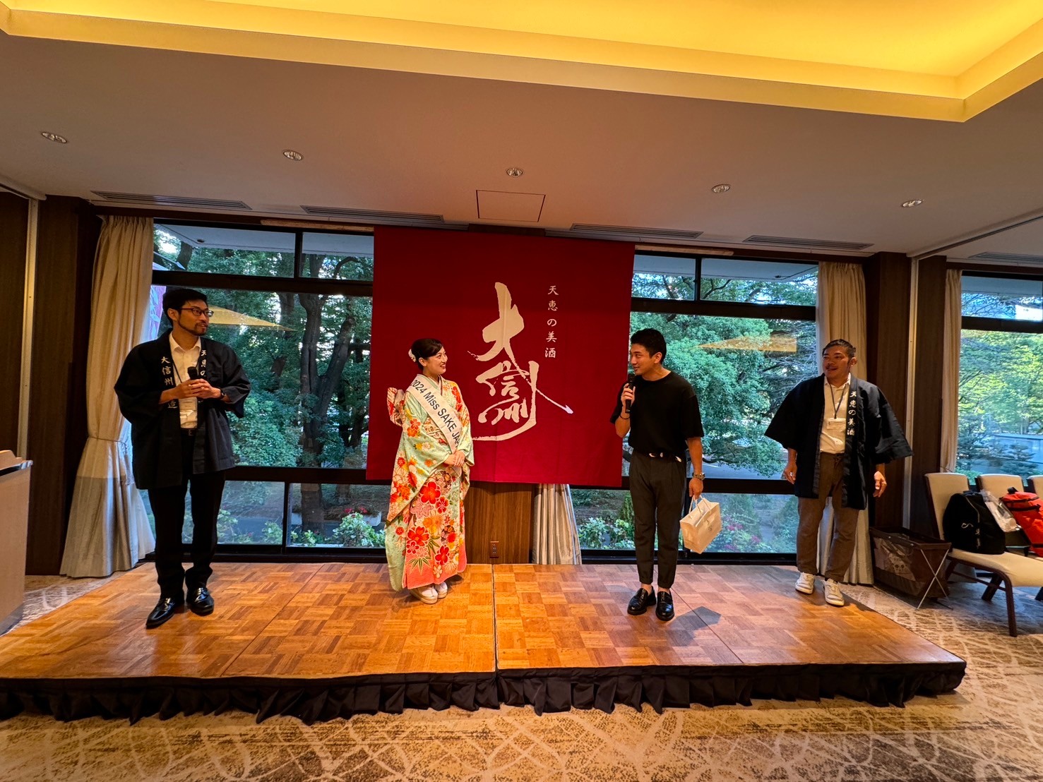 そして大抽選会後は田中健一様よりMiss SAKEのご紹介をしていただき、一般社団法人Miss SAKE大西美香 代表理事と共に壇上に上がらせていただきました。これから大信州のお酒がさらに広がってまいりますよう願いを込めまして長渕剛さんの「乾杯」を披露させていただきました。皆様手拍子をしながら聴いてくださり、胸が熱くなる想いでございました。