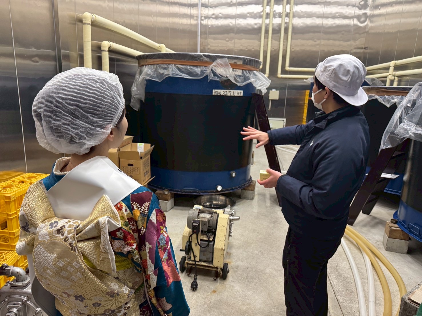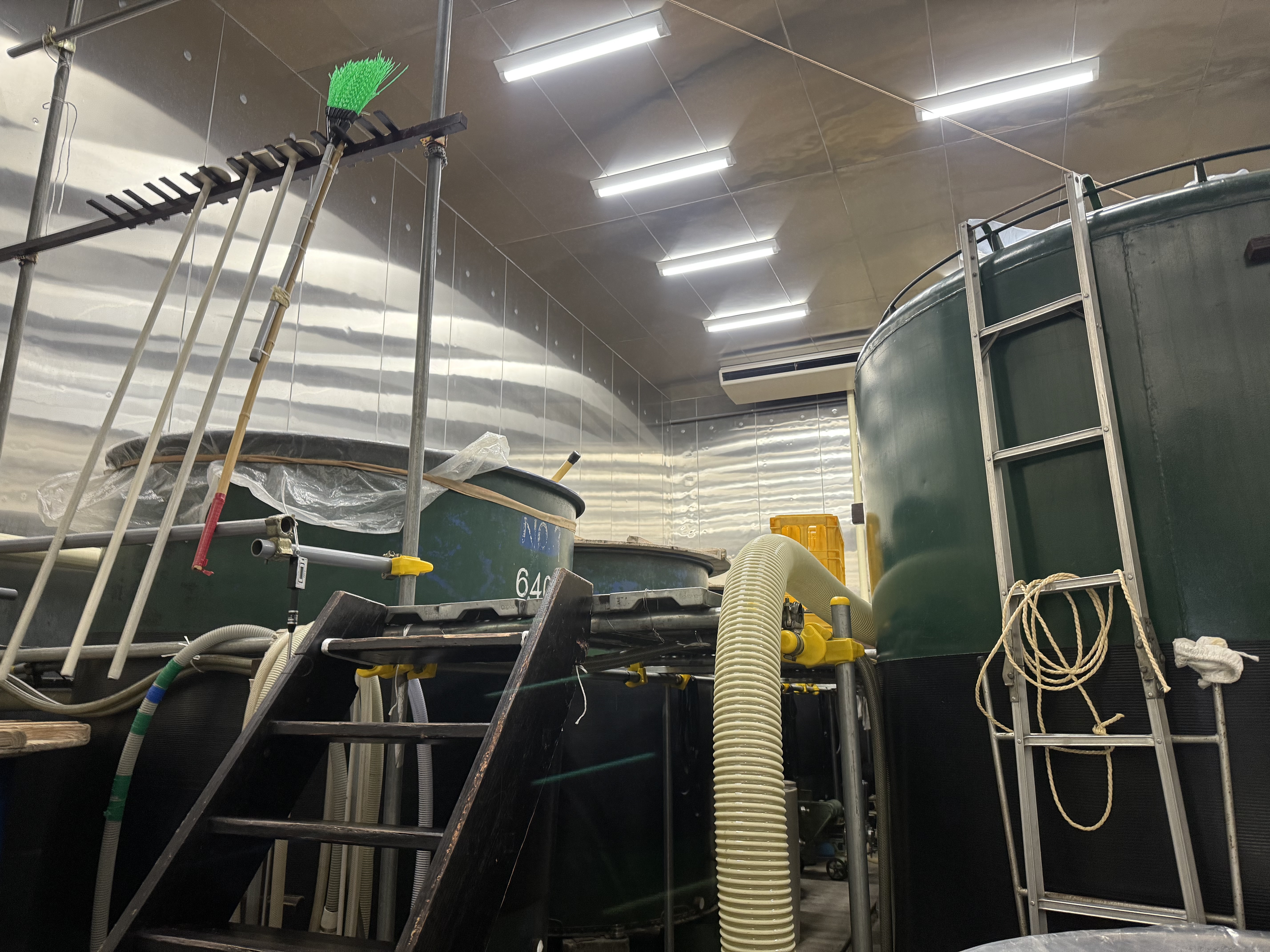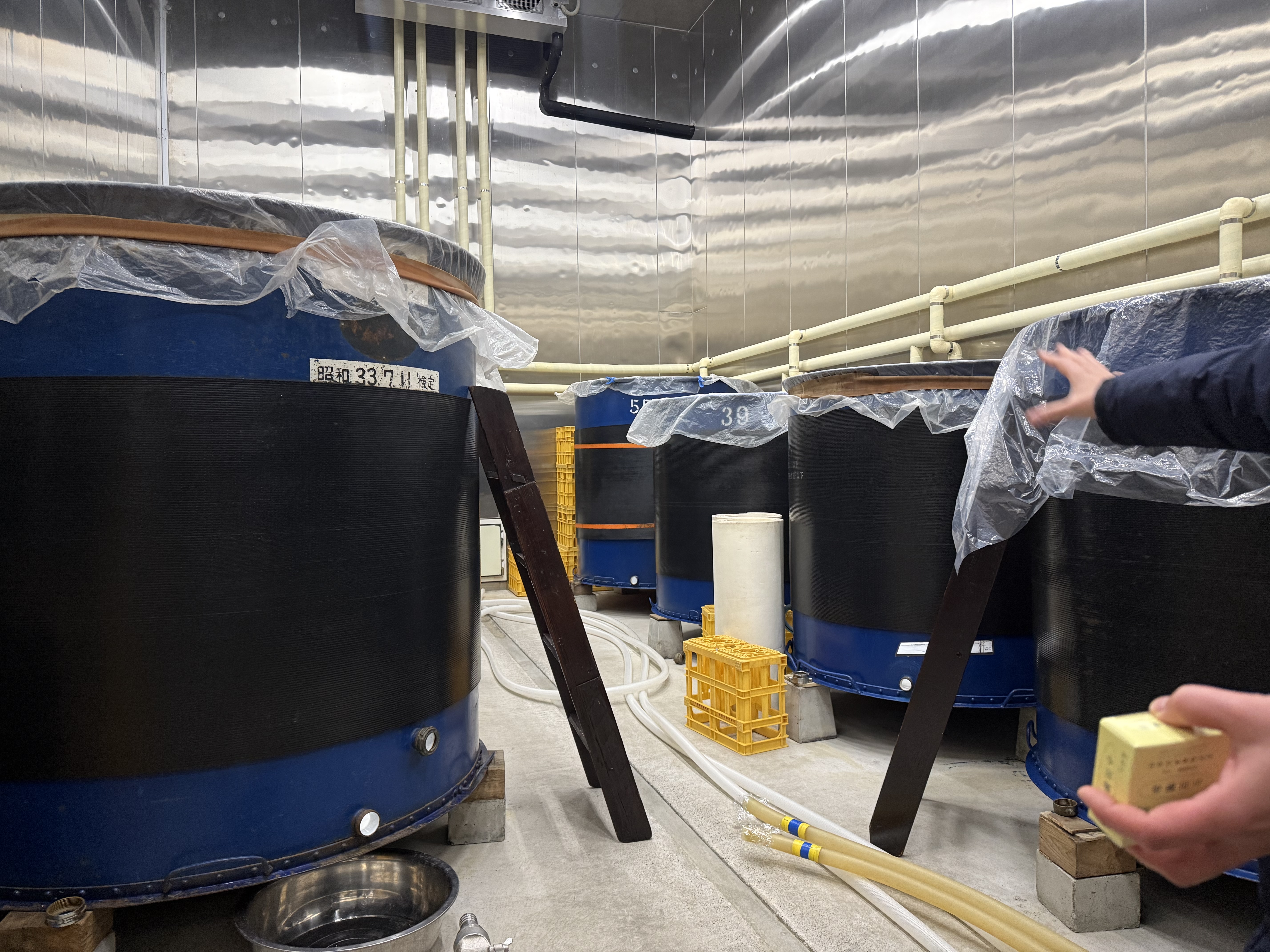 – and the fermentation hall, lined with huge tanks.