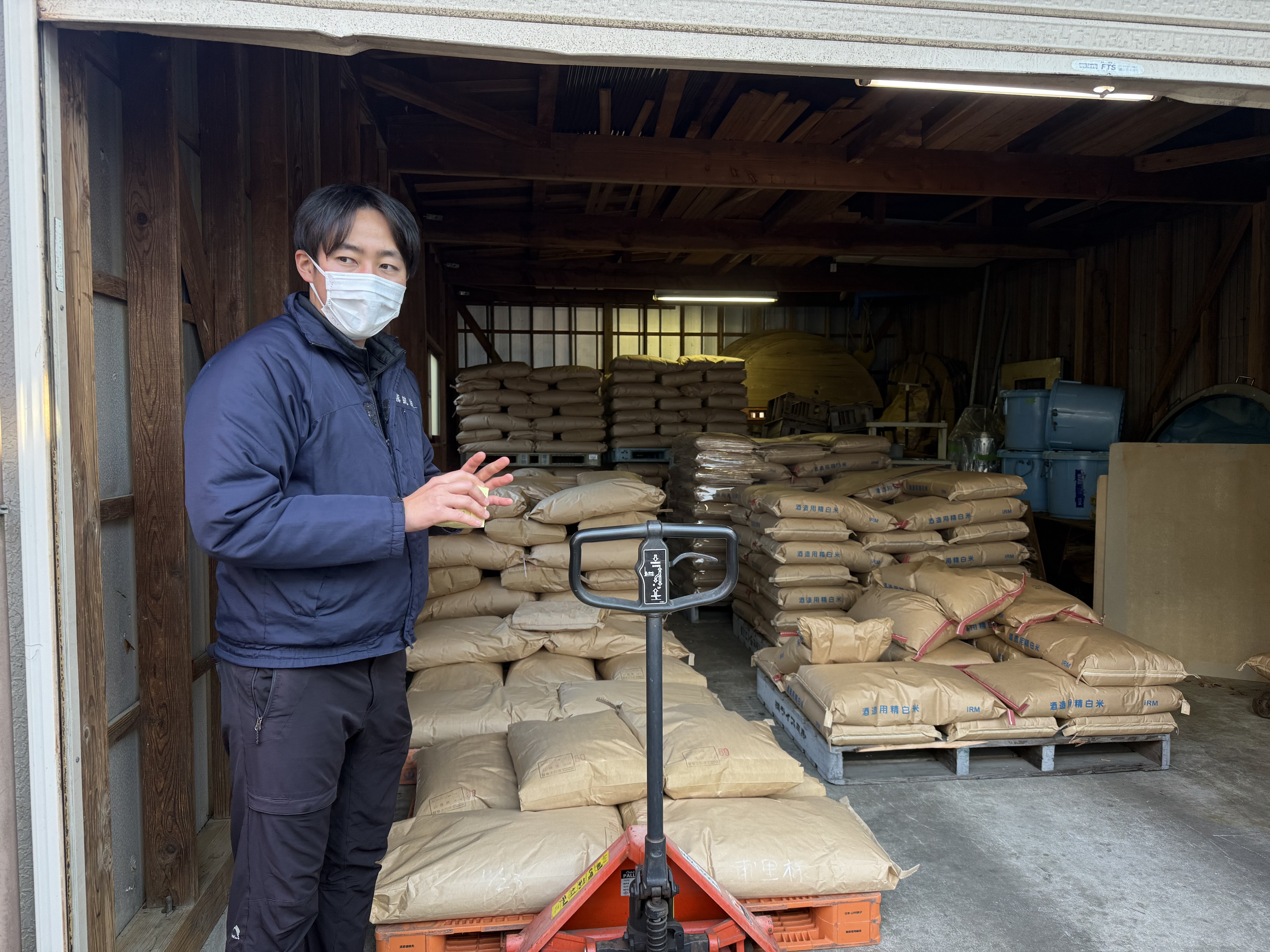 The tour began with an overview of the sake rice used. Approximately 60% of the rice used at Urazato Shuzoten is locally grown varieties such as Hitachi Nishiki and Gohyakumangoku, demonstrating the brewery’s commitment to local production. Inside the rice storage facility, massive quantities of rice—scheduled to be fully used within the year—were neatly stacked to the ceiling, creating a truly overwhelming sight. At the same time, the brewery faces recent challenges brought on by intense summer heat, such as rice becoming harder, more fragile, and less soluble—reminding me of the tangible impact climate change has on sake production.