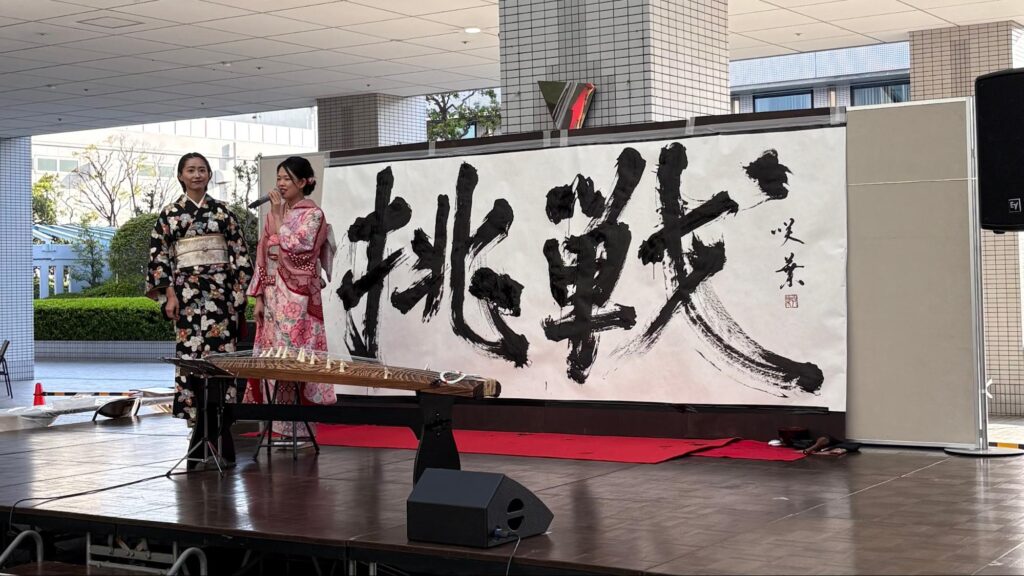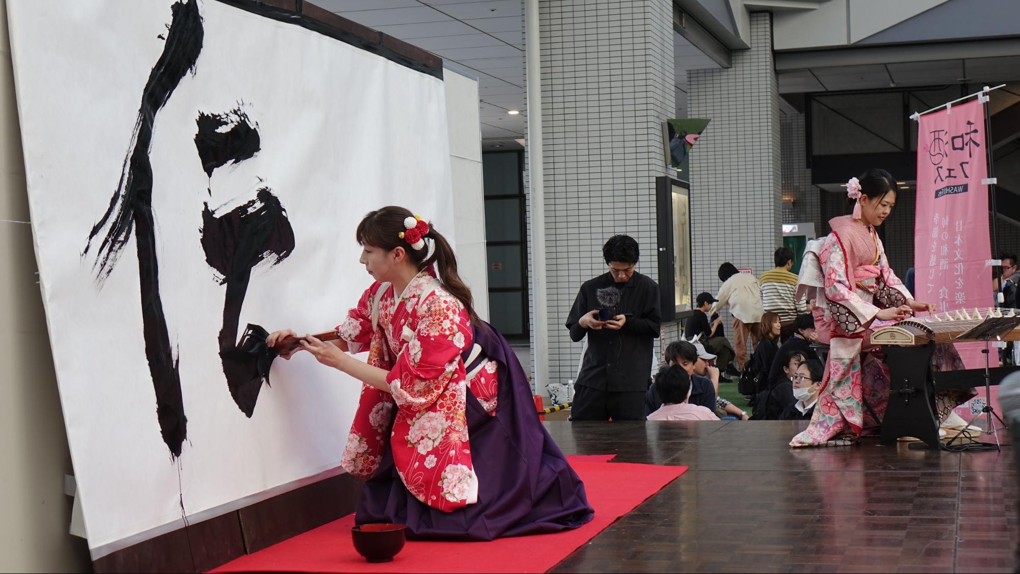 そして本イベントでは、中西咲葉 さんと 朝岡祐美 さんによる、書道と箏のコラボレーションステージが披露されました。ユネスコ無形文化遺産への登録が期待される日本の伝統文化が融合したその舞台は、大変迫力があり、会場全体を魅了しておりました。
